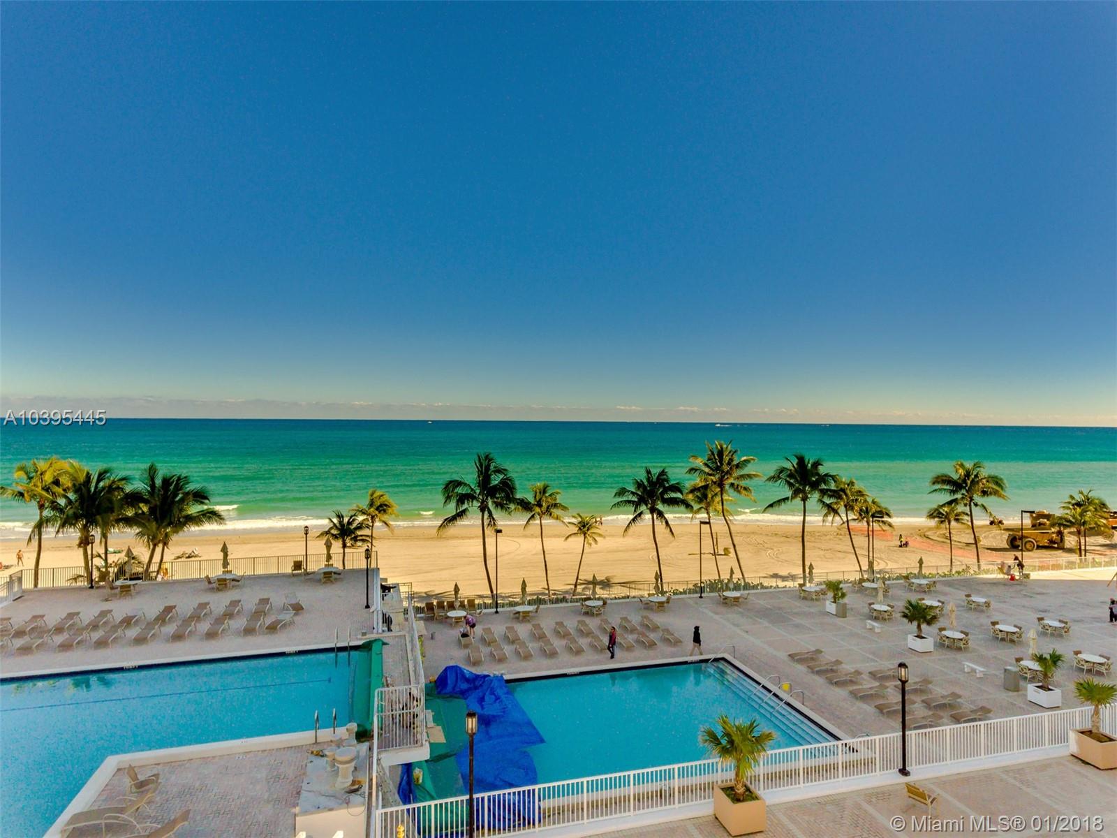 Great beach getaway at Quadomain Valencia, partially furnished, and awesome price. Priced to sell, will not last. Large 2 bedroom unit with 1,350 sqft. Tile and wood floors throughout. French doors, and one remodeled bathroom. Balcony has south exposure with a glimpse view of the ocean overlooking the lobby's roof. Balconies in the building are being redone with an expected completion time of Summer 2018. All special assessments have been paid for. Building features 2 heated pools, restaurant, sauna & steam room, valet service, security, exercise room, beauty salon, game room, and much more. 24hrs attended secured lobby. Direct beach access and walking distance to Hollywood Beach Broadwalk. Call today before is gone. See attachments for a list of the personal excluded items from the sale.