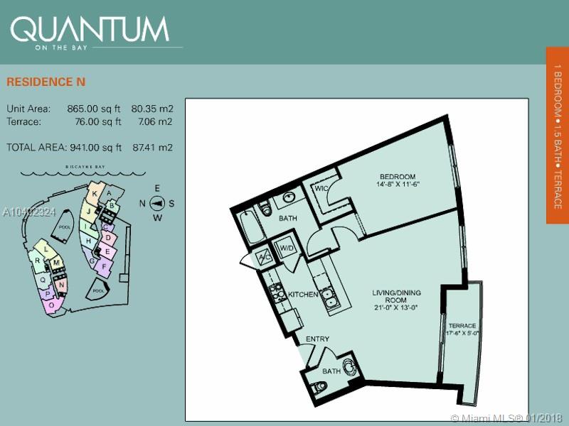 BRIGHT UNIT WITH STUNNING CITY AND OCEAN VIEWS, 1 BEDROOM AND (1.5) ONE AND ONE HALF BATHROOMS TOTALLING 799 S/F. UNIT COMES WITH 2 PARKING SPACES AND 1 STORAGE (VERY RARE TO FIND). FULLY EQUIPED OPEN CONCEPT KITCHEN, WITH AMPLE LIVING/DINING ROOM SPACES. WASHER AND DRYER INSIDE THE UNIT. BALCONY OFFERS 180 DEGREES VIEWS, FROM THE OCEAN TO THE GOUGEOUS SUNSET. QUANTUM ON THE BAY OFFERS TONES OF AMENITIES, 2 POOLS, RESIDENT LOUNDGE, STATE-OF-THE -ART FITNESS CENTER, SPINNING STUDIO, SAUNA AND YOGA, IN ADDITION TO A SEPARATE CONFERENCE/BUSINESS ROOM. ***PRICE TO SELL TODAY***WON'T LAST***
