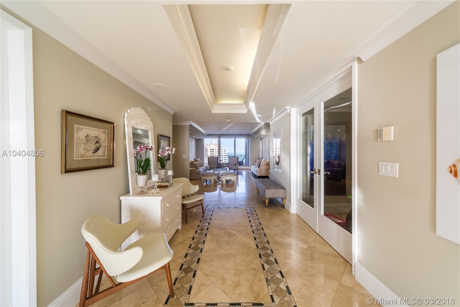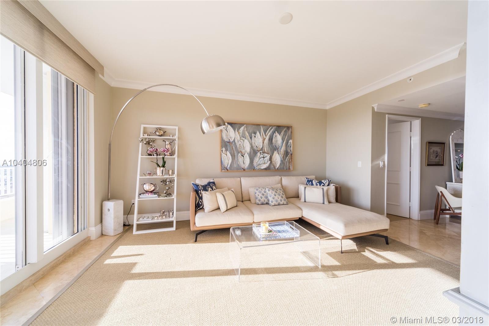Gorgeous 3 bedroom plus maid quarters, 4.5 baths home with the most spectacular ocean, bay and skyline views everywhere, private elevator direct to flow through unit with forever beautiful sunrises and sunsets. Ample terraces to enjoy the views of the ocean, beach, bay, city and gardens. Kitchen with top Subzero and Miele appliances. Prime beachfront building located steps from the sand. World class amenities, resort style living that include Valet/Concierge, security, several pools, spa, tennis center, gym, restaurant, library, wine cellar, playground, exclusive beach & pool service and much more. Close to the KB shops, restaurants, golf, and the gorgeous beach!