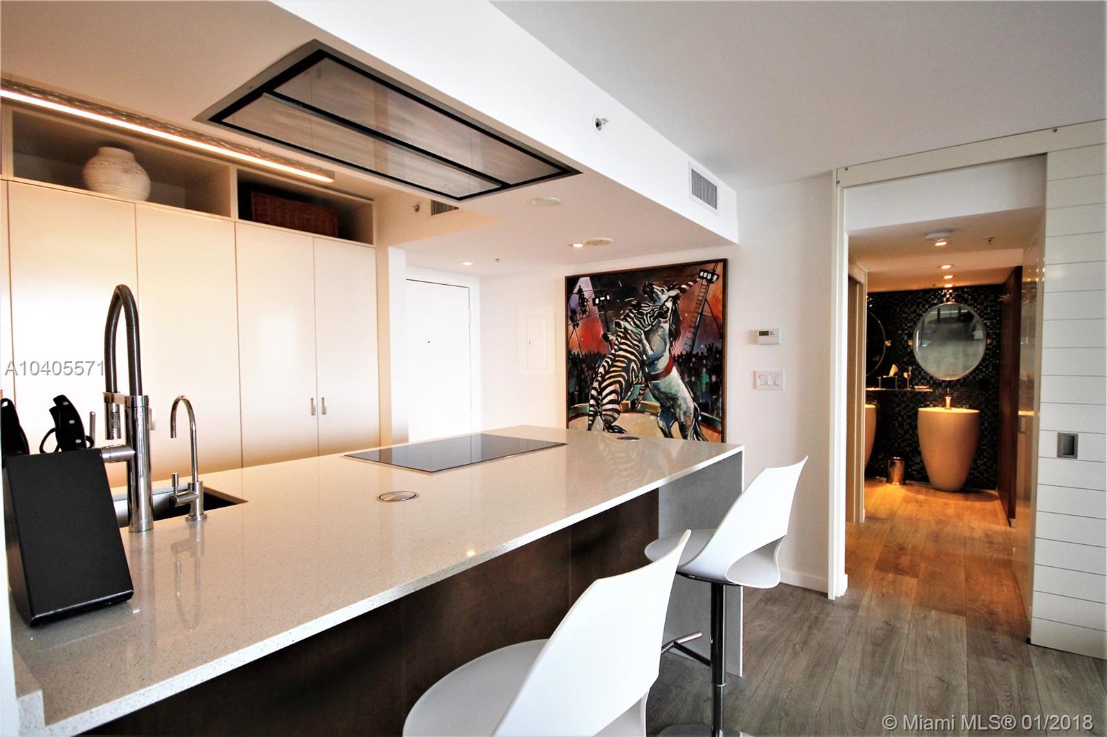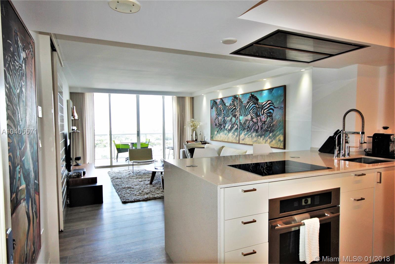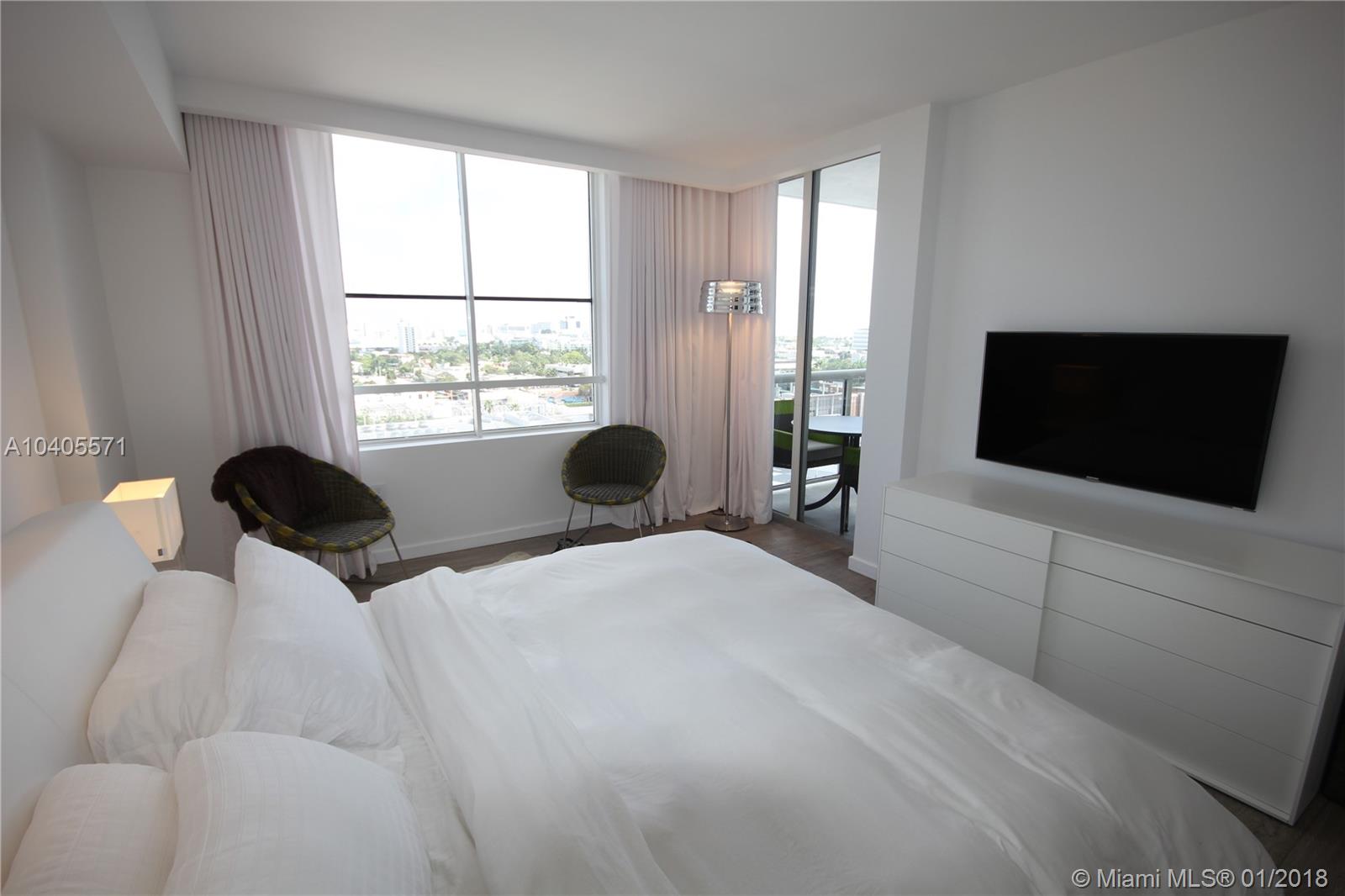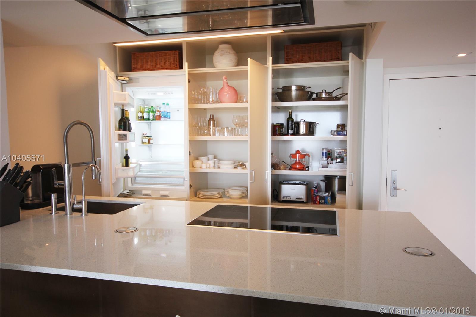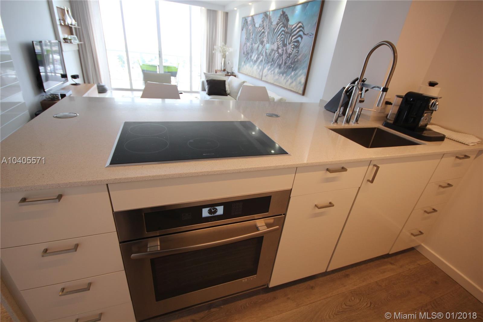 Recently remodeled to high-end quality perfection in impeccable condition with an awesome South Beach view. Open, spacious & bright living area w/full glass wall to glass balcony, recessed LED lighting, wood fls, exposed contemporary kitchen w/large Quartz island, Italian fixtures, high gloss custom cabinetry w/concealed Thermodor refrig & Bosch dishwasher. Over-the-top Master suite featuring a lavish bath w/wall mounted toilet & bidet, Italian glass mosaic tiling, two solid cone pedestal sinks w/large beveled edged circular mirrors. The spacious bedroom area has recessed LED’s, double glass door to balcony, a large window, plus a built out all walnut walk-in closet. This bay front building in the fabulous & trendy Sunset Harbour neighborhood is an absolute Top Pick!