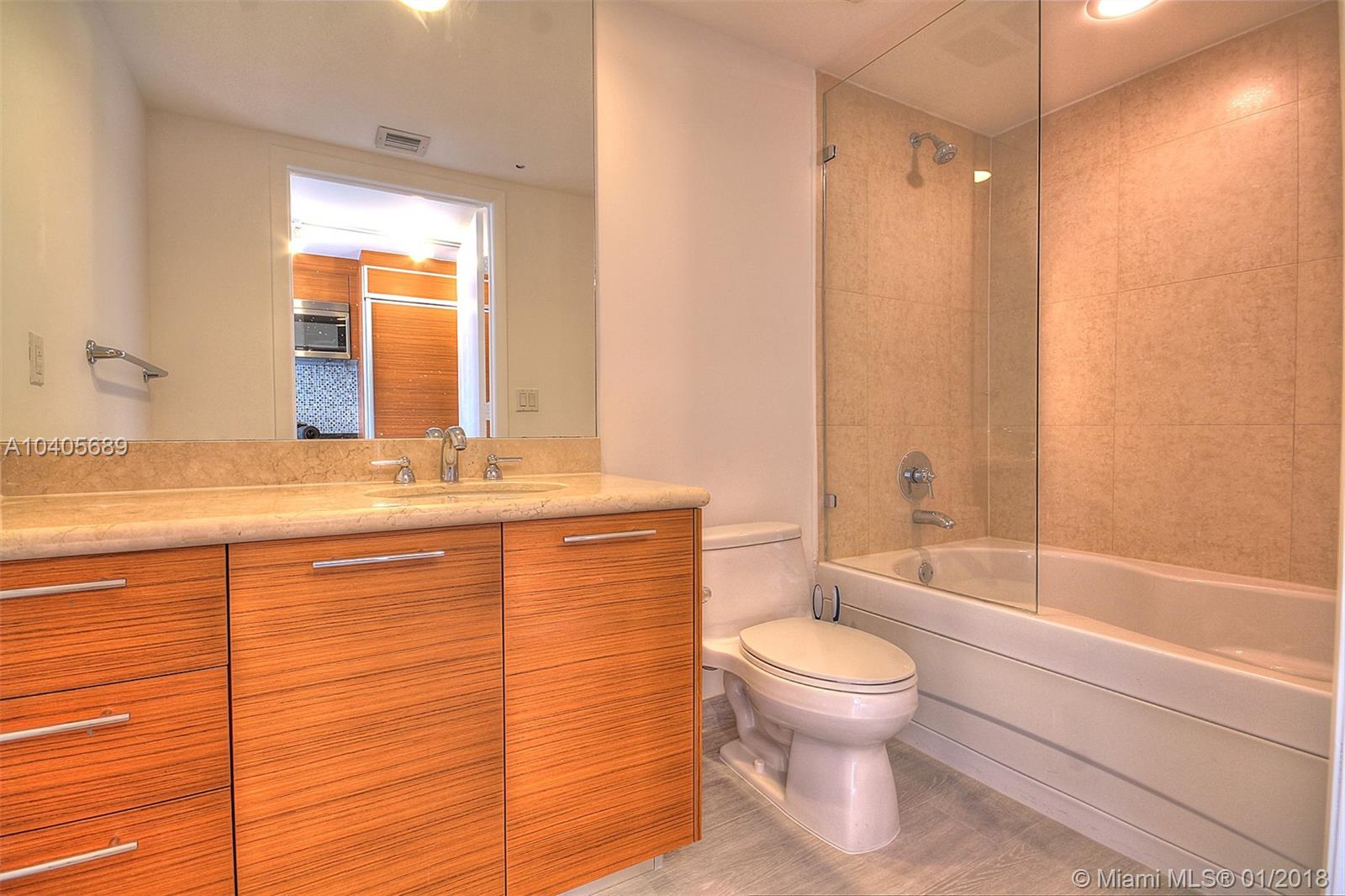 Brand New! Beautifully renovated studio at 50 Biscayne. Renovations JUST completed, has not been occupied yet. Porcelain tile floors throughout simulating a light-grey wood. Freshly painted. Back-splash, track lights and shower glass enclosure are a few of the upgrades. Vertical shades being installed. Rent immediately with flat screen TV, queen sized bed, wifi router/modem, or enjoy as vacation home. Walking distance to Whole Foods, Bayfront Park, Bayside Marketplace, Metro mover, and Brickell City Center. Low maintenance fee includes basic cable, high-speed internet, amenities, water/hot water, and assigned parking space. Washer / dryer in unit. Large closet. Lap pool, Cabanas, BBQ, Gym, Sauna, Steam Room, Jacuzzi, Exercise Classes and Pilates Room. Seller financing may be available.