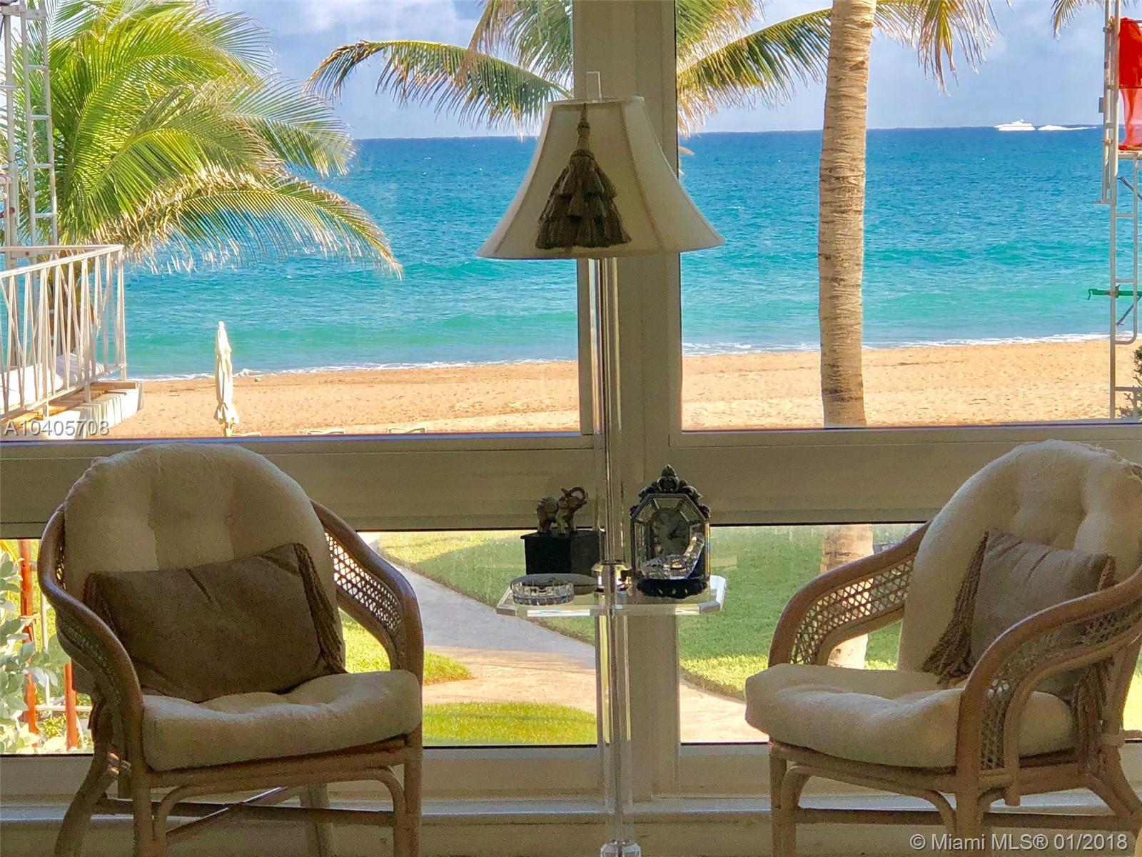 RARELY AVAILABLE! And well sought after. A small piece of paradise. This is Lauderdale-by-the-Sea's BEST KEPT SECRET. 14 exclusive residences on 153 ft. of private beach. Enjoy breathtaking Direct Ocean Views from every room. A true tropical Oasis & Casual beach lifestyle. Featuring impact windows, Updated kitchen. Newer A/C, W/H and W/D. Retractable awning. Fully furnished and ready for you to move in. Covered parking spot. Pool, summer kitchen & storage locker. Malulani has an onsite property mgr. & No land lease. These beach side villas don't come up very often, so hurry!!