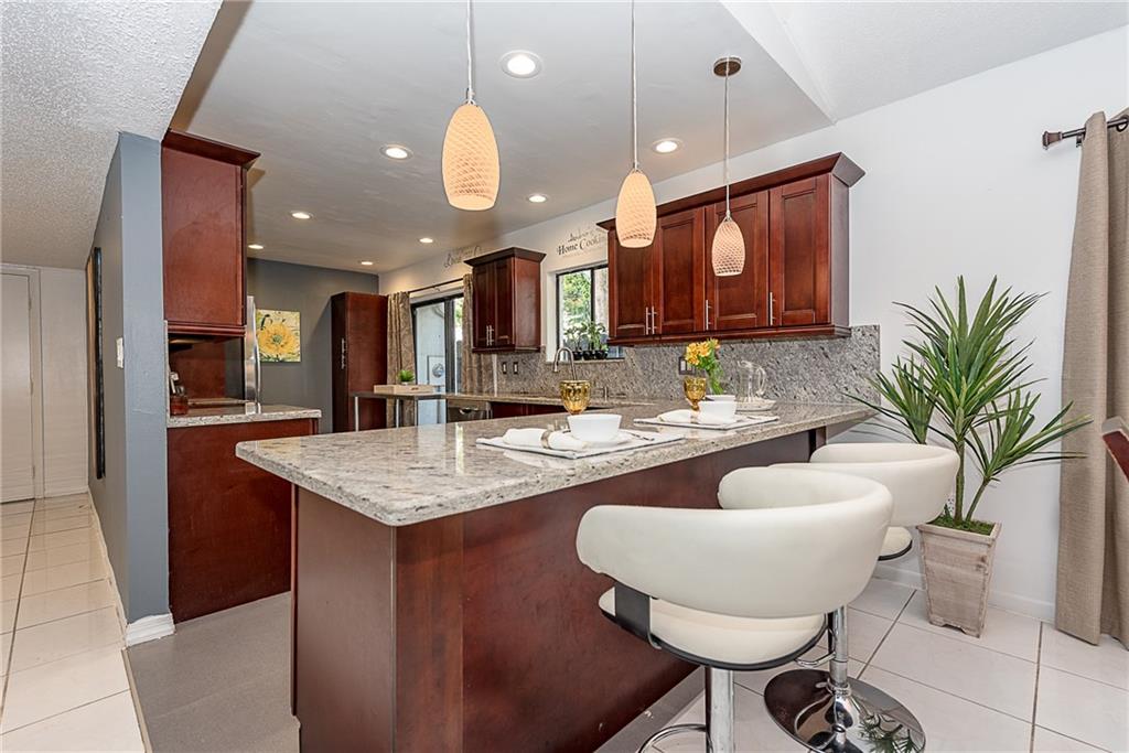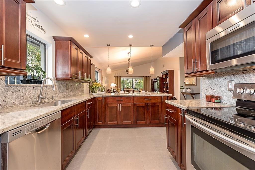 **LOOK NO FURTHER**Rare opportunity, spectacular corner location villa. Vaulted ceilings, remodeled kitchen, open concept, granite countertops, beautiful island. Spacious master with two walk-in closets, porcelain floors. Oversized screened patio, perfect for entertaining, overlooking beautiful private garden, steps from to the pool. Second bedroom overlooks a beautiful patio. Carport. Association covers roof, lawn, basic cable. Can finance with 10% down. Hurry, this opportunity will not last!