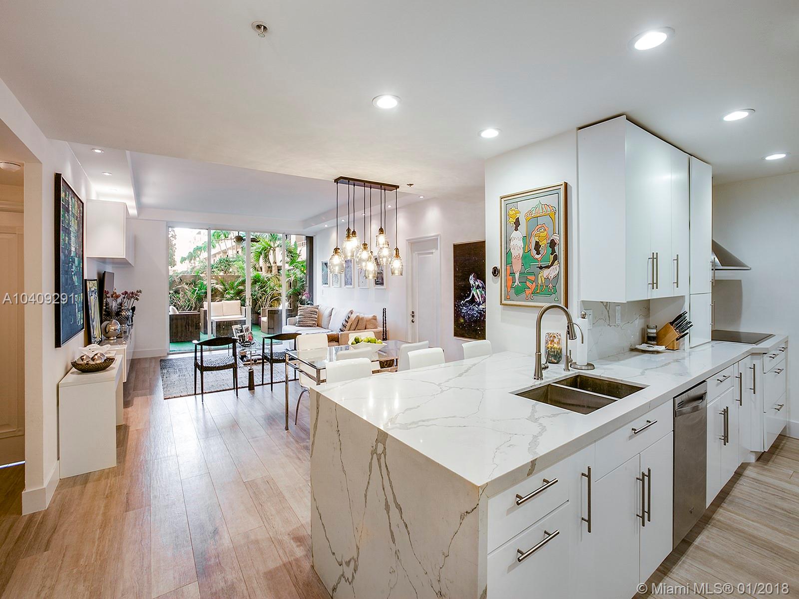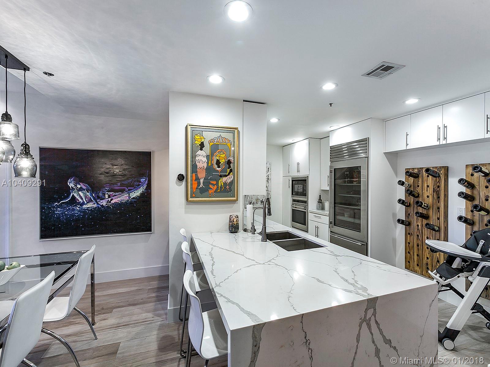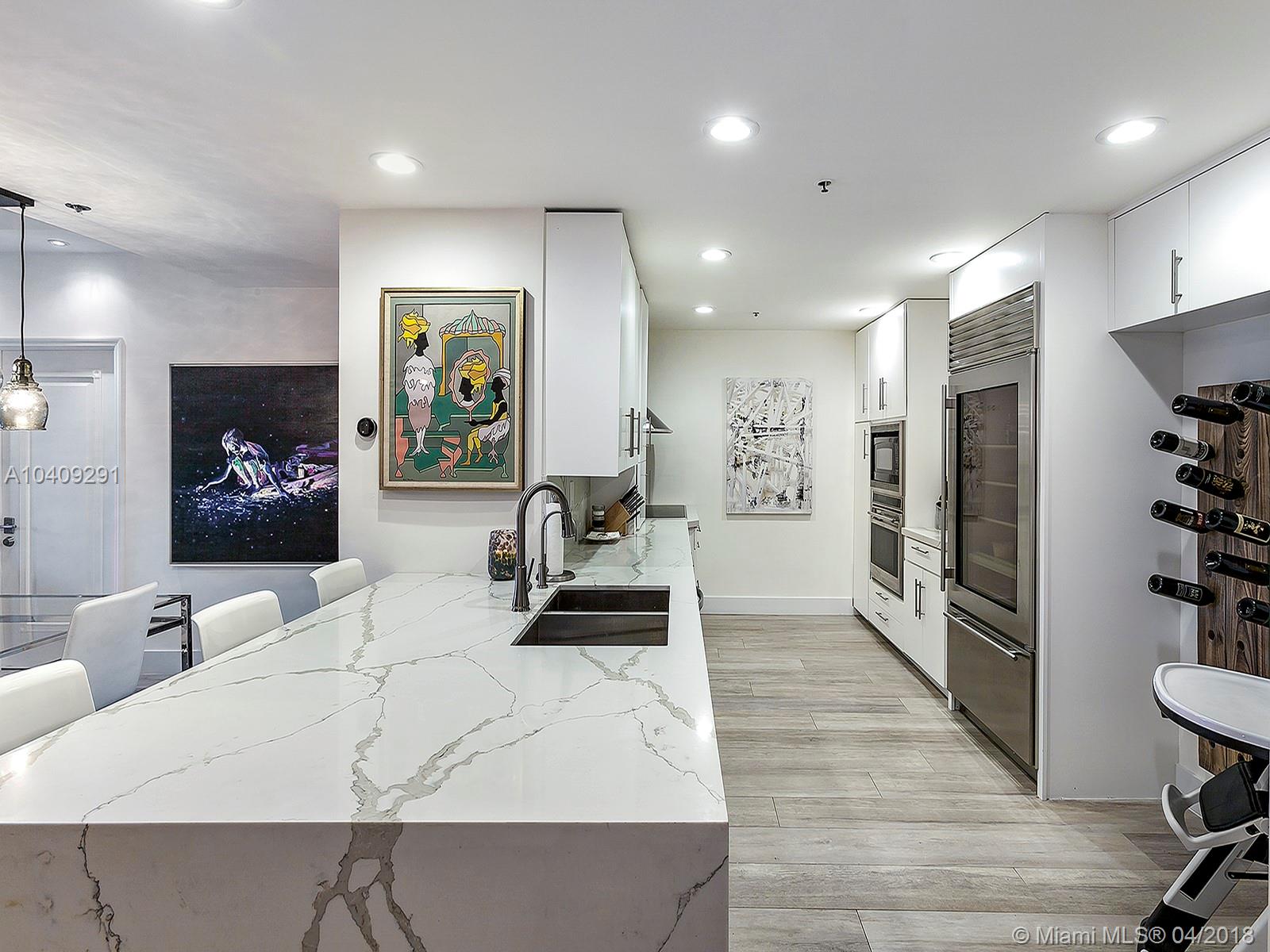 Spacious and bright this split-plan 2/2 plus convertible Den has been remodeled to achieve a light contemporary beach look with gorgeous wood grain porcelain floors and open kitchen featuring elegant quartz counters punctuated by a waterfall edge. Panoramic sliding glass doors open to enormous private turf deck providing true indoor-outdoor living space ideal for entertaining and direct access to the beach. Oversize master suite boasts significant custom designed closets and a luxurious bath. Top-of-the-line appliances include glass front subzero fridge and wolf cooktop and stove.