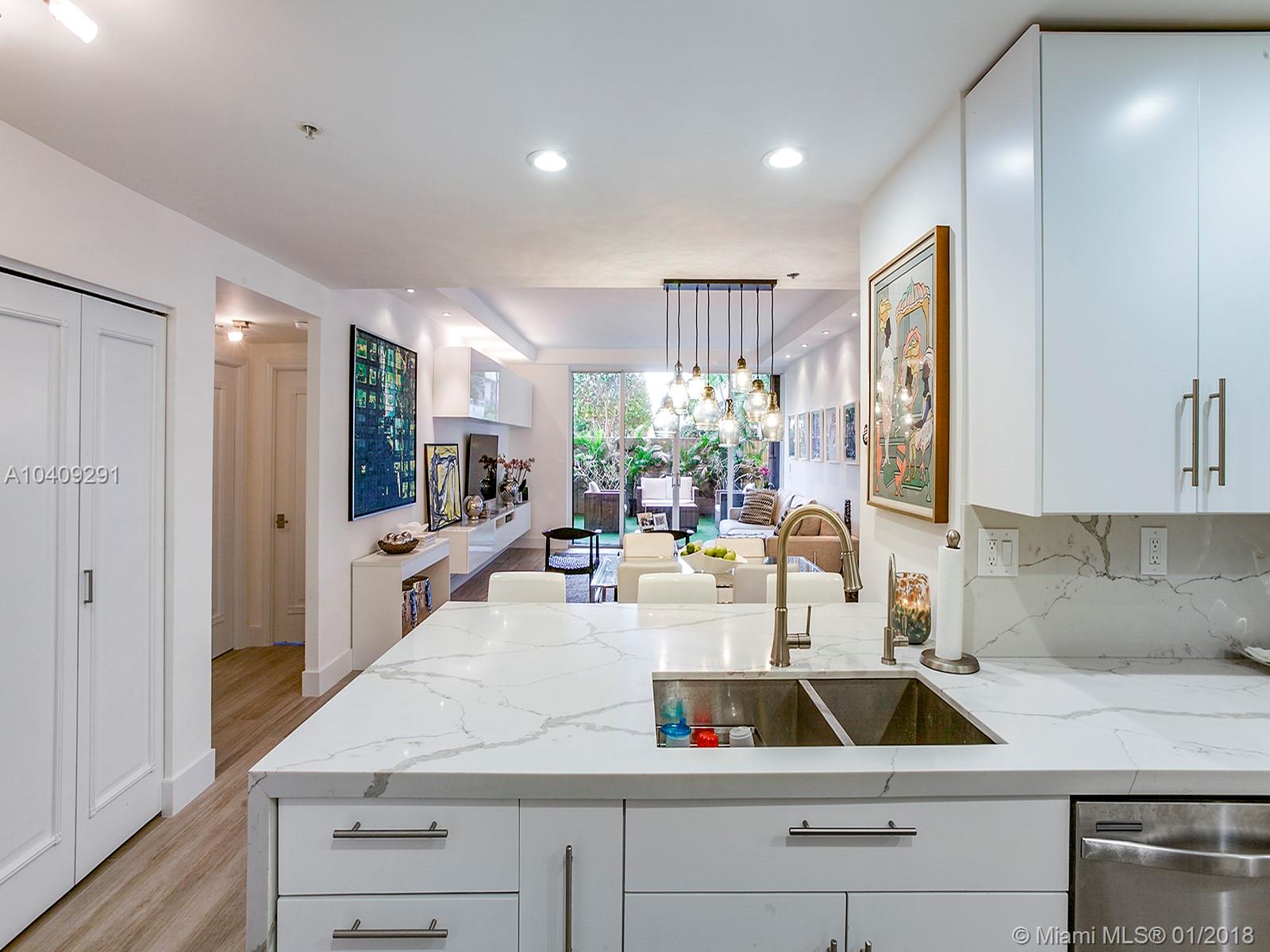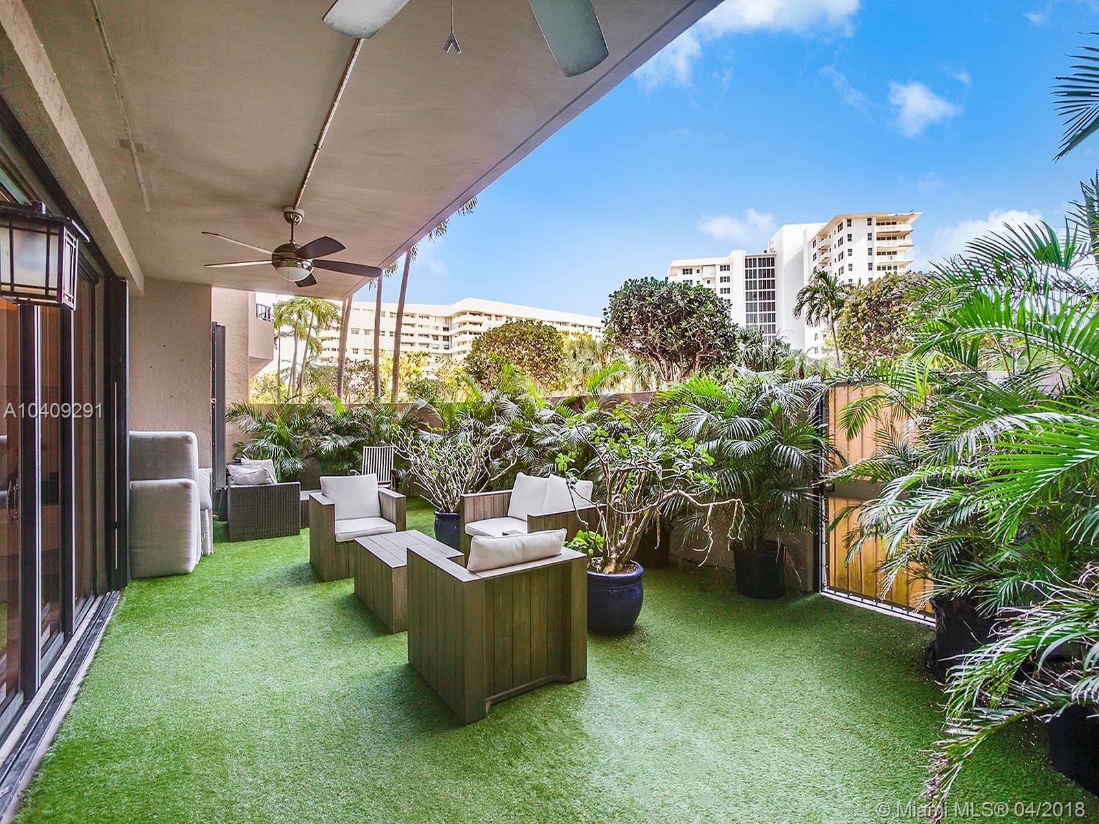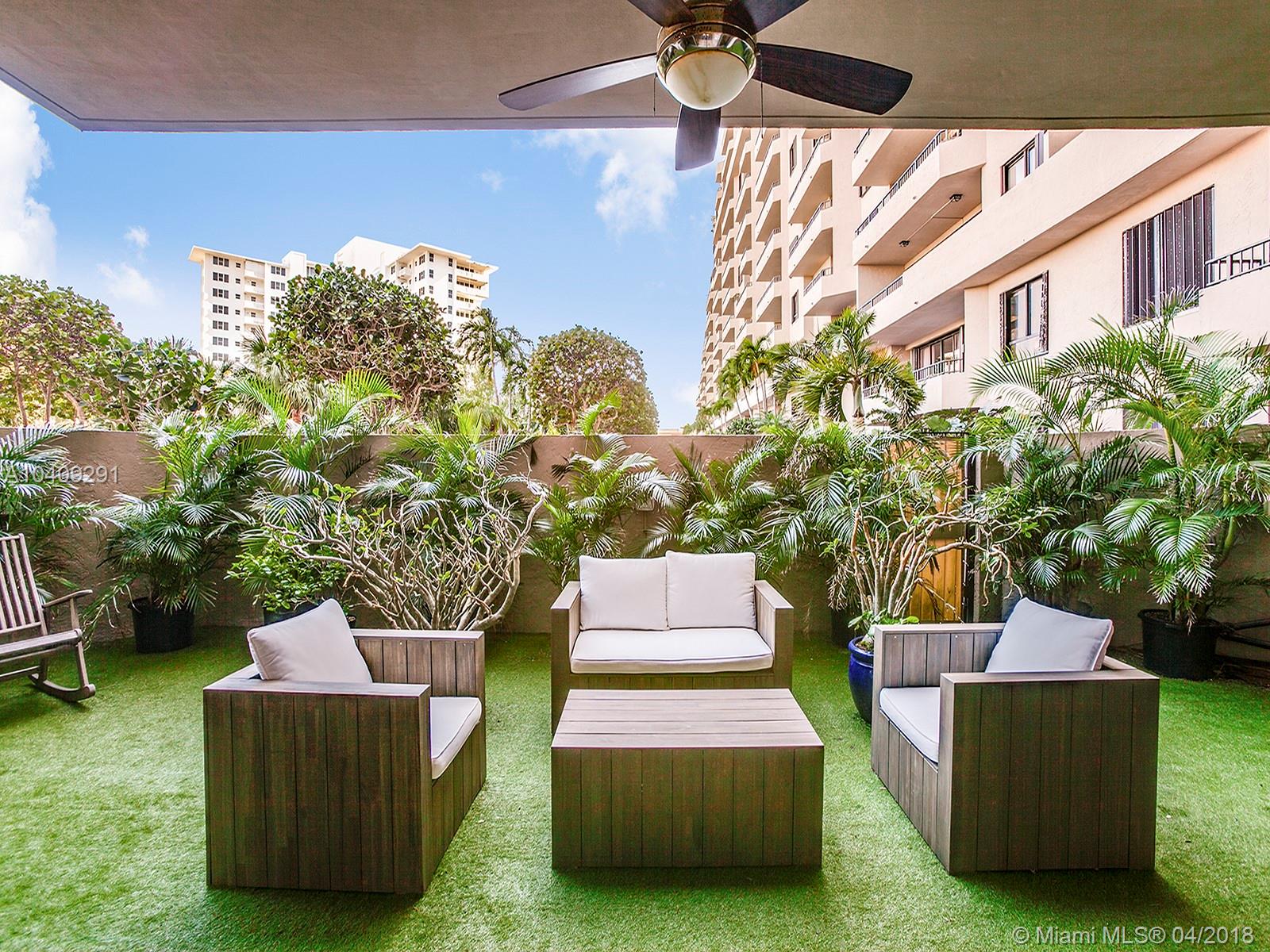 Spacious and bright this split-plan 2/2 plus convertible Den has been remodeled to achieve a light contemporary beach look with gorgeous wood grain porcelain floors and open kitchen featuring elegant quartz counters punctuated by a waterfall edge. Panoramic sliding glass doors open to enormous private turf deck providing true indoor-outdoor living space ideal for entertaining and direct access to the beach. Oversize master suite boasts significant custom designed closets and a luxurious bath. Top-of-the-line appliances include glass front subzero fridge and wolf cooktop and stove.