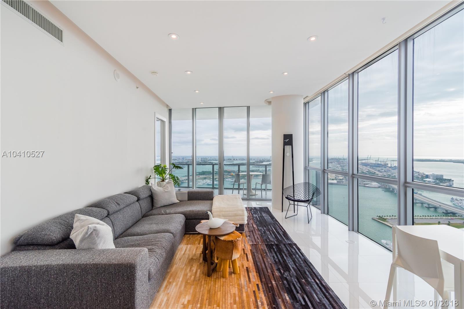Spectacular water views in every direction await you from the least expensive 01 unit residence at Marquis Miami. This sky home boasts 2,106 sq.ft. with 3bd/ 2.5 ba. w/ two Private Elevators that open directly into this remarkable SE corner unit. Impeccably finished w/ white glass flooring throughout, outfitted w/ the Control 4 system in every room to control lights and sound, upgraded tray lighting in living room and master suite, motorized shades in every room and much more. Live in the heart of Miami’s cultural center across from the PAMM, Frost Science Museum, American Airlines Arena and beautiful Museum Park. At $567 a sq.ft. unit 4501 is the deal you have been waiting for on a high floor at Marquis.