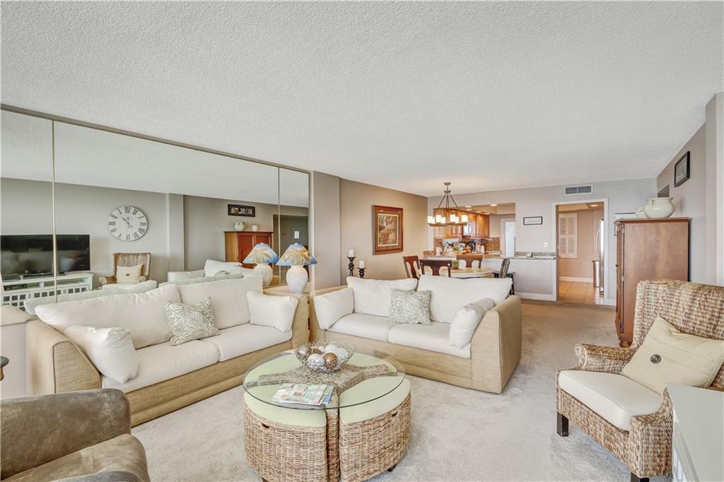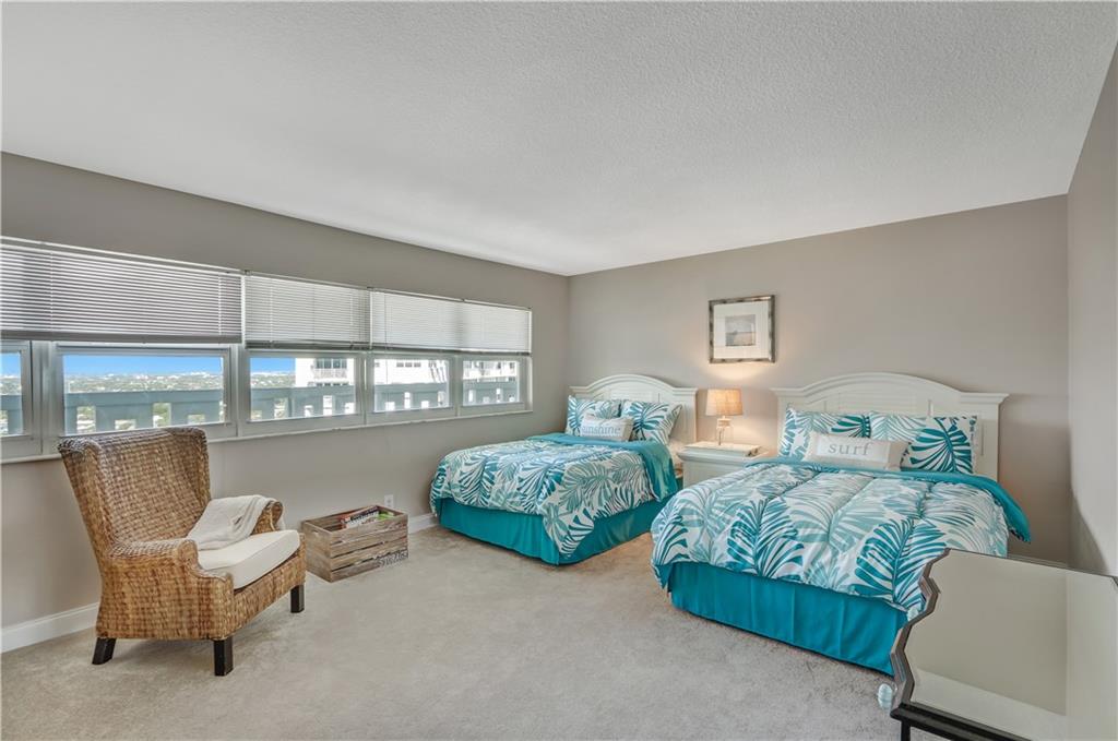Great Space with Open Floor Plan. Sweeping Views of Ocean, Inlet, with Parade of Ships. Enjoy Huge,Remodeled, Kitchen, which is Open to Living Area and has Direct Ocean Views. This Rarely Available, High Floor, 2 Bedroom Comes with Impact Windows, and Covered Parking. Gorgeous Pool Deck with Heated Pool, Bar b q, Deeded Beach Access, Fitness Room and 24 Hr. Security. Located in Secluded Neighborhood on Barrier Island, yet close to Airport, Shopping, & Restaurants. dining chandelier excluded