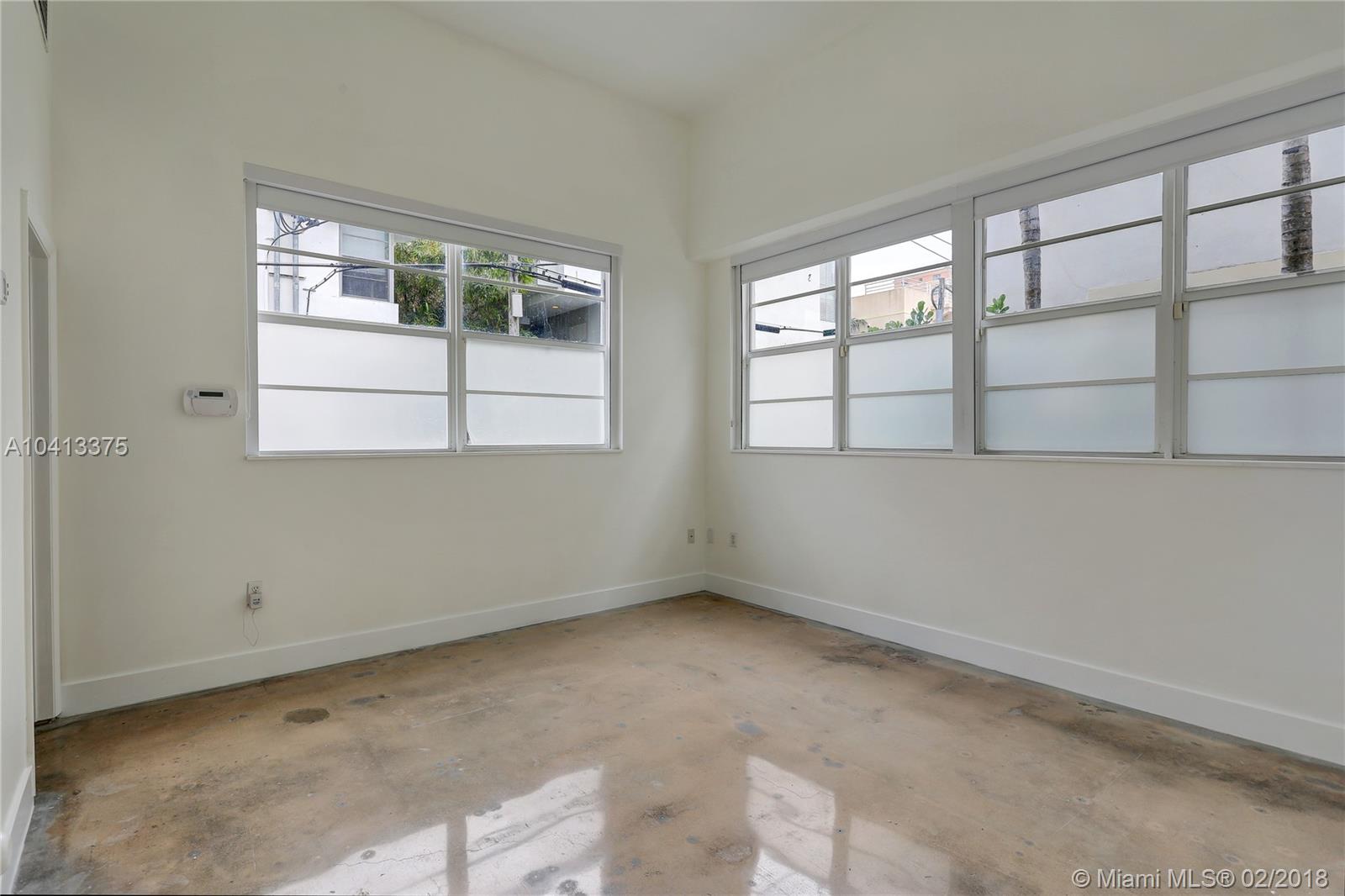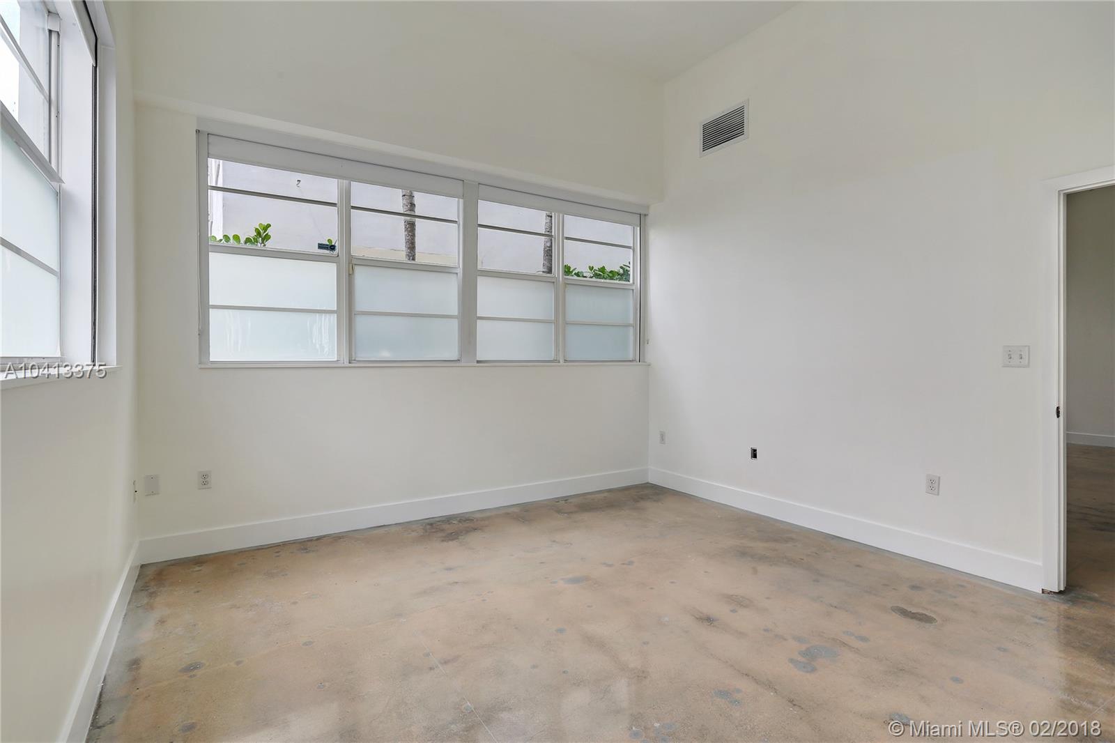 Architectural gem building. This unit features high ceilings, new kitchen, washer and dryer recently polished and painted concrete floors. Very spacious 1/1 with walking closet. Gated building located in the heart of SoBe close to restaurants, shopping and the beach. Boutique building. Pets less than 20 pounds OK. Seller motivated. Easy to show.