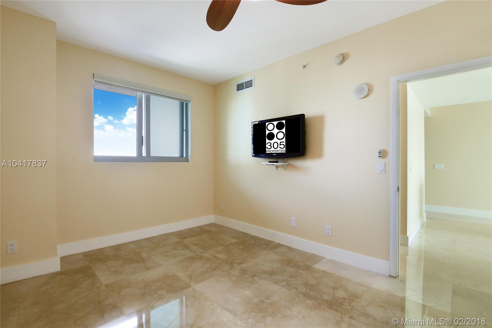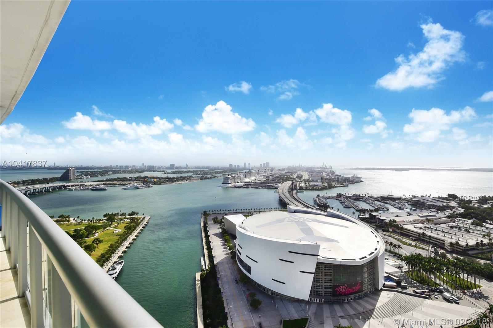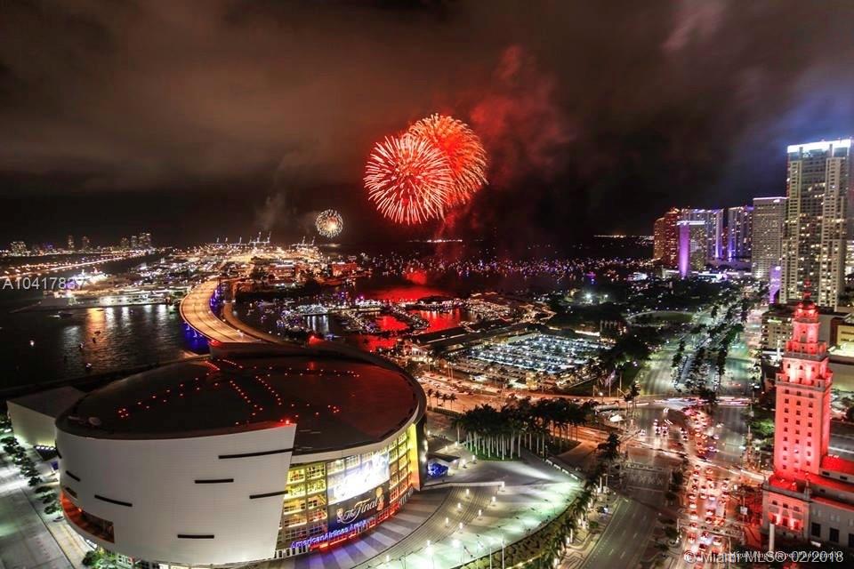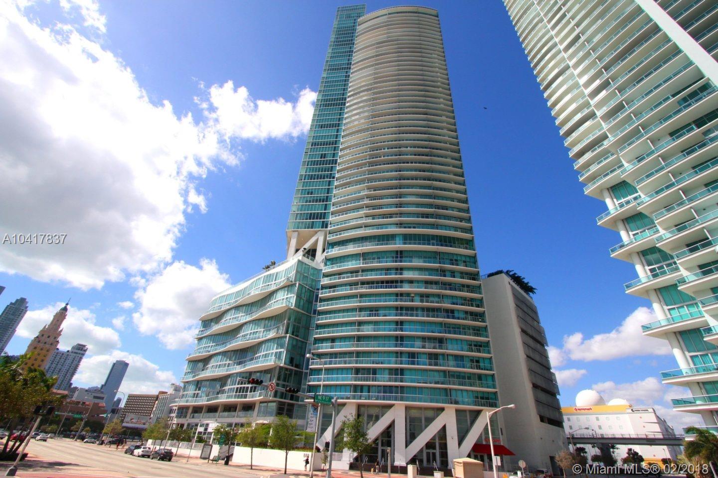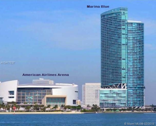 Spectacular 33rd floor 2 BED + DEN & 2 BATH residence featuring 2 PARKING SPACES, with panoramic views of Downtown Miami, Biscayne Bay & Miami Beach. Only 12 of these highly sought floor plans exist in the entire building and rarely with 2 assigned parking spaces costing Seller over $30,000.00. This ready to move-in sky residence includes a spacious den with custom sliding doors that can be used as a 3rd bedroom or office. Other elements include marble floors, custom closets, remote operated retractable shades in the master bedroom and flat screen TV's in the living room and bedrooms. MarinaBlue is an architecturally stunning 57-story tower with unparalleled luxury amenities located in the exclusive Park West neighborhood in Downtown Miami, just steps from the American Airlines Arena.