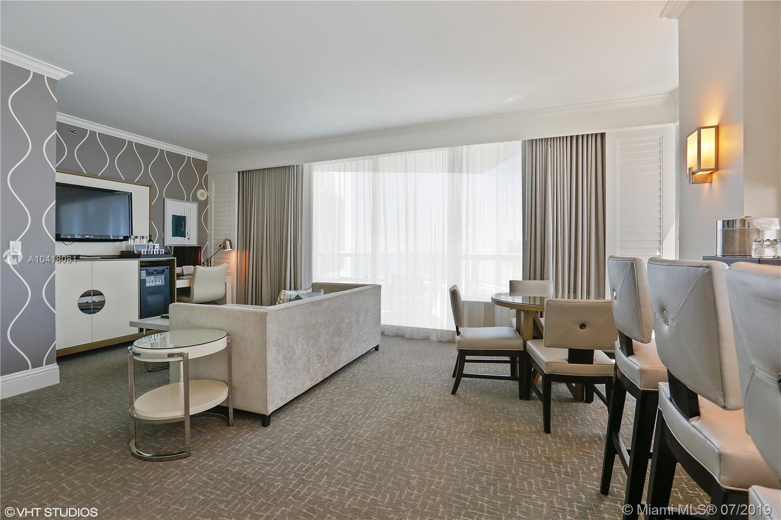 Beautiful SE corner 1 bedroom/2 bath with direct ocean & bay views at the Fontainebleau II. Enjoy full service, vacation-style living in a furnished turnkey unit with king bed, sleeper sofa +more. Enroll in hotel rental program & receive income while away! The Fontainebleau Resort offers luxury amenities on 22 oceanfront acres including award-winning restaurants, LIV night club, Lapis spa & state-of-the-art fitness center. Maintenance includes: AC, local calls, electricity, valet + daily free breakfast in the owner’s lounge.