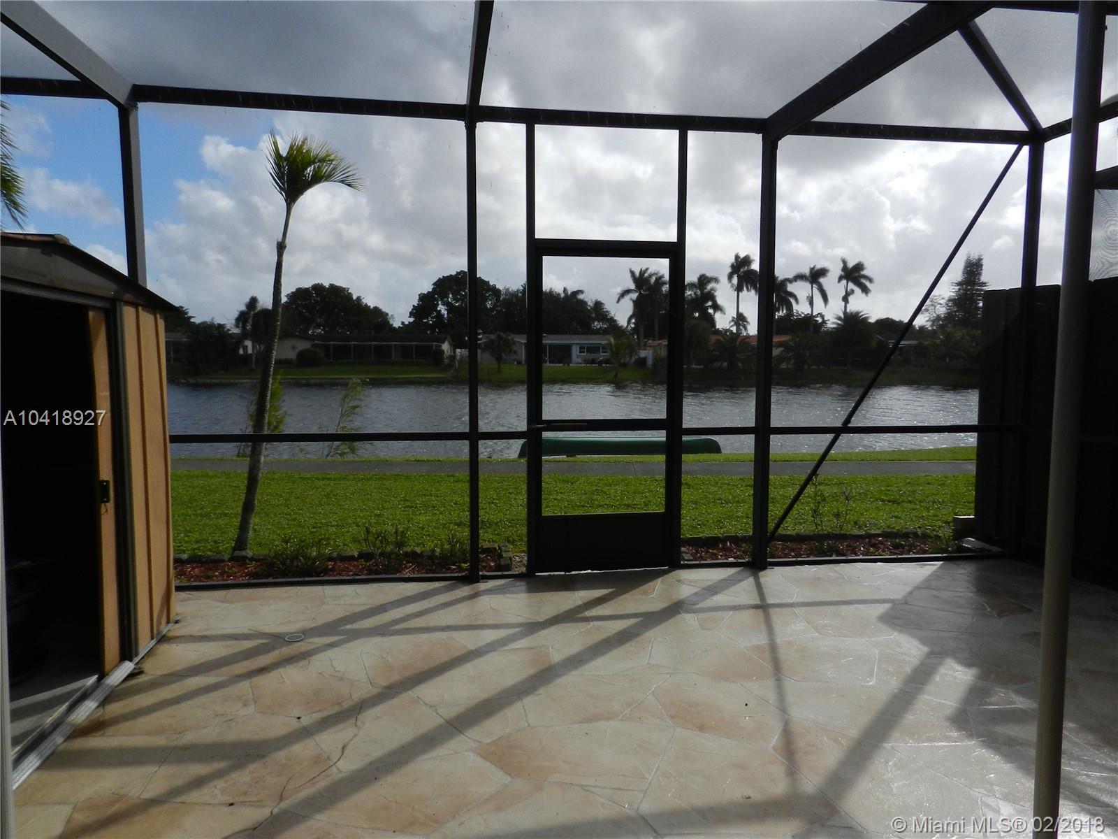 Rarely available lakefront 2 bedroom/2 bath Pembroke Pines villa. Gorgeous waterfront views w/tropical landscaping and walking/jogging path along the lake. Tastefully remodeled kitchen with eat-in area and has full sized washer & dryer under counter that are closeted when not in use. Living room has a wood burning fireplace and vaulted ceilings. Remodeled and updated baths. Walk-In vaulted ceiling closets with shelving for extra storage space. Large screened patio with shed and exit to back garden and lake. Deeded parking (2) directly in front of unit. Beautifully landscaped front garden and driveway area. Located close to shopping, mall, restaurants, houses of worship and minutes to major roadways.