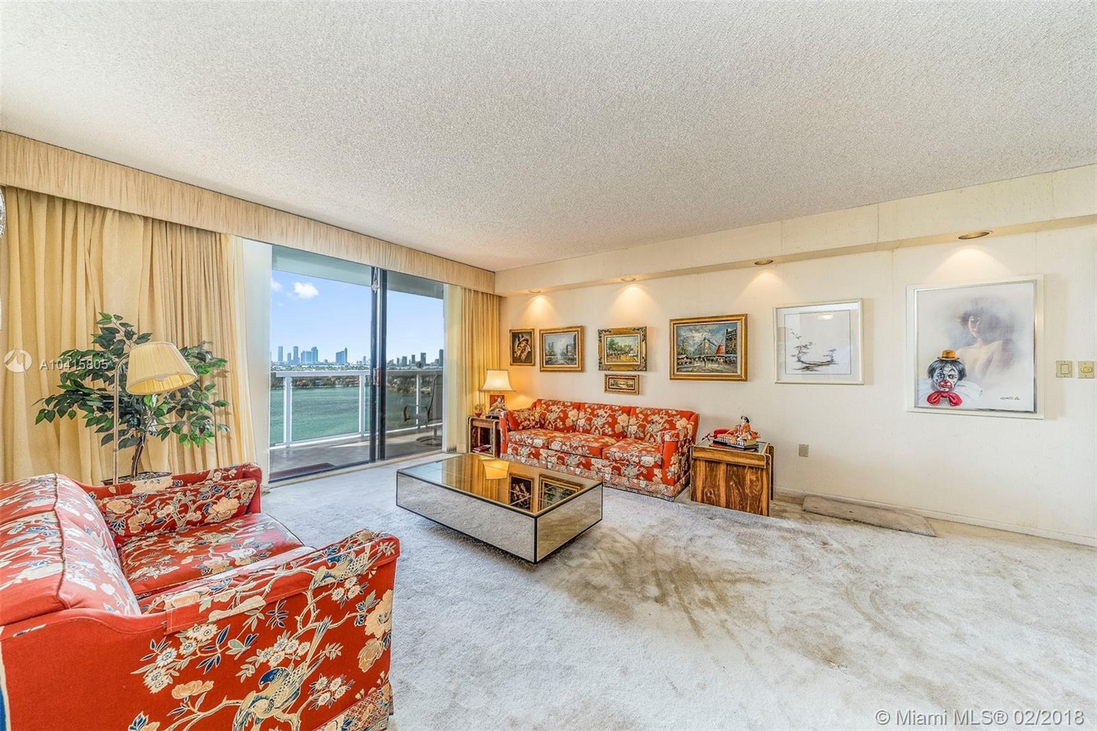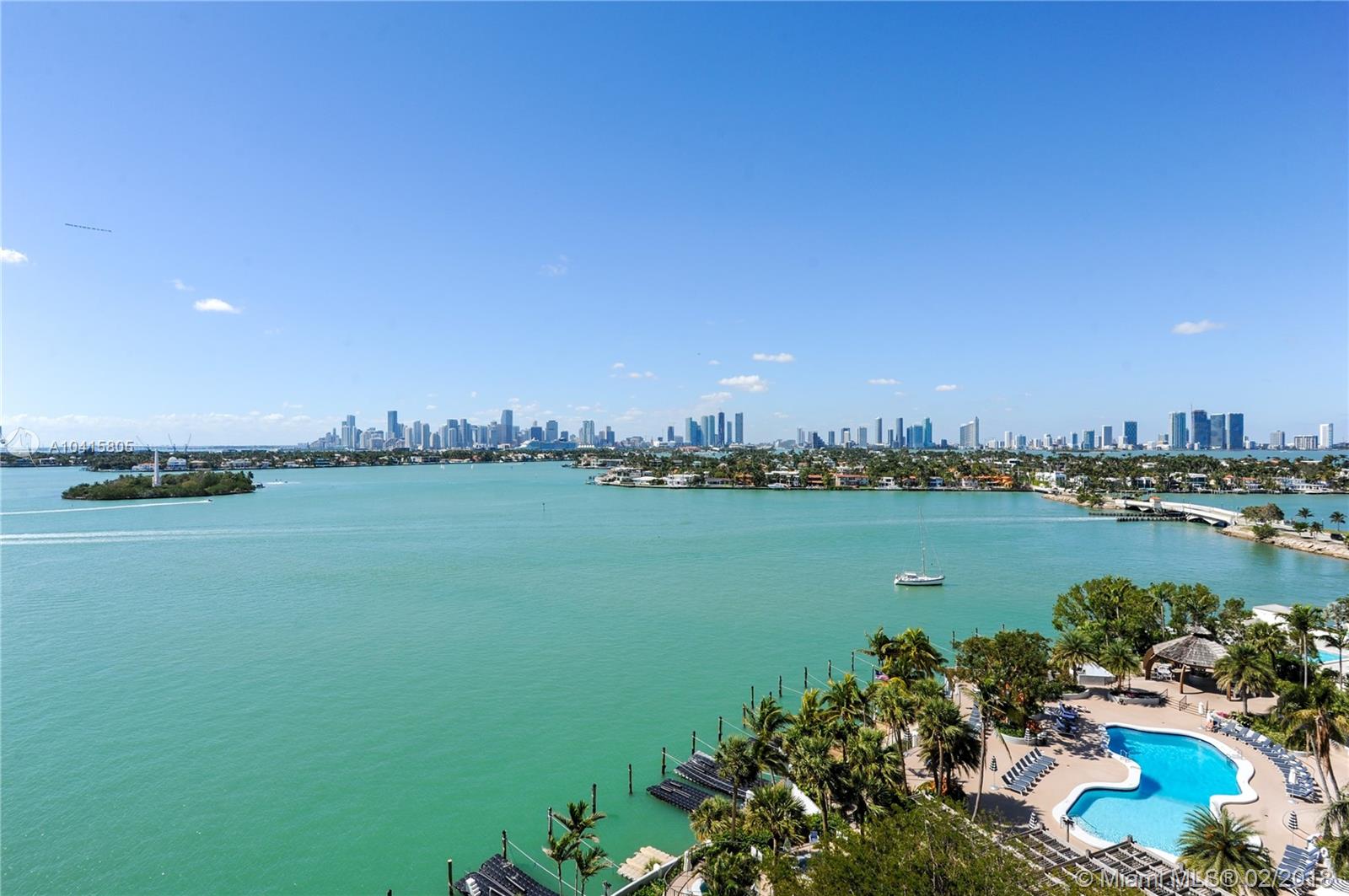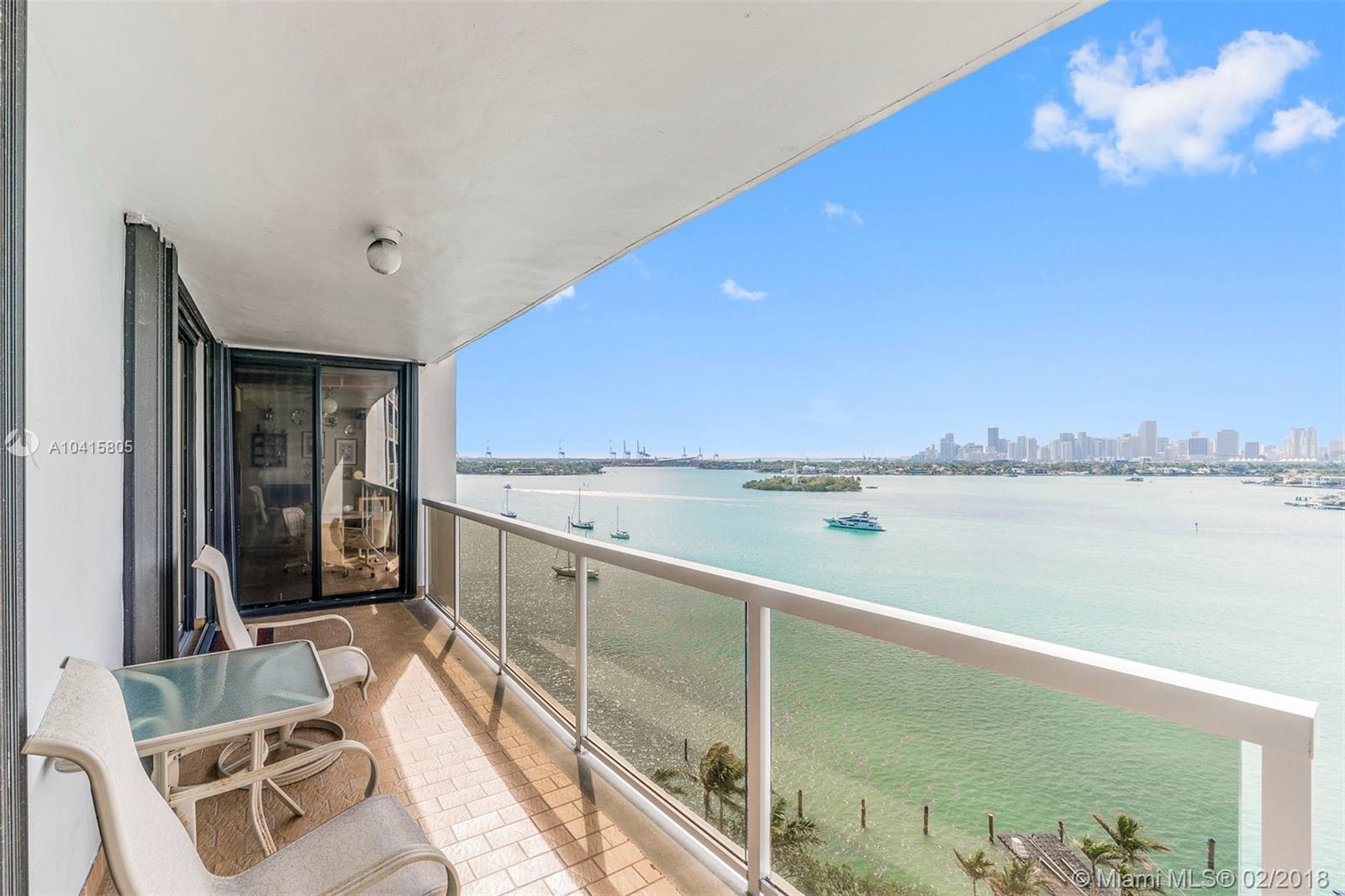 Magnificent views of Biscayne Bay, Star Island and South Beach. Nine Island Avenue Condo located at the prestigious Belle Isle in the Venetian Islands. Unobstructed water views from this 2 bedroom and 2 full baths, in the "06" line, spacious open floor plan, storage, full sized washer/dryer, master suite, bath/bidet, 1 parking space + 2nd space for rent. Great amenities: Cabana, Heated pool, jacuzzis, restaurant, tennis courts, boat docks overlooking the bay and Miami skyline, valet, gym, BBQ area. Walking distance to shops, restaurants,Lincoln Road, South Beach, Fresh market. across from the Standard Hotel...Assessment paid by Seller.