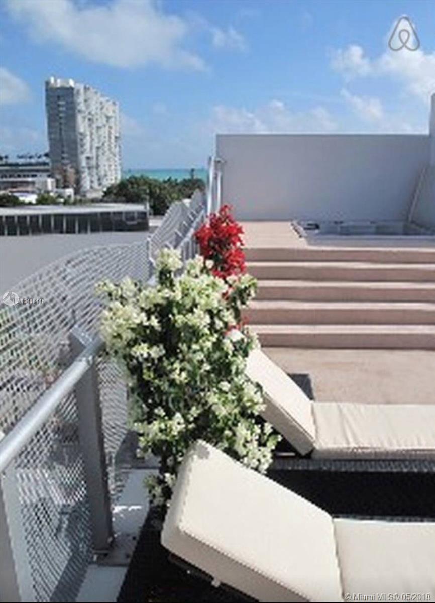 Immaculate corner Penthouse with completely private spacious rooftop terrace and private hot tub perfect for entertaining. Interior features 2 bedrooms and 2 baths, outstanding finishes, impeccably designed. One of a kind condo. Amenities include swimming pool, gym, free valet parking for you and your guests and Beach service with chairs & umbrellas. Building is located in the desired SoBe Arts District and Collins Park area. Short/quick walk to the beach, restaurantes, shops, cafes and many entertainment. Owner motivated! SF per attached floor plan. Being sold As-is with right of inspection.
