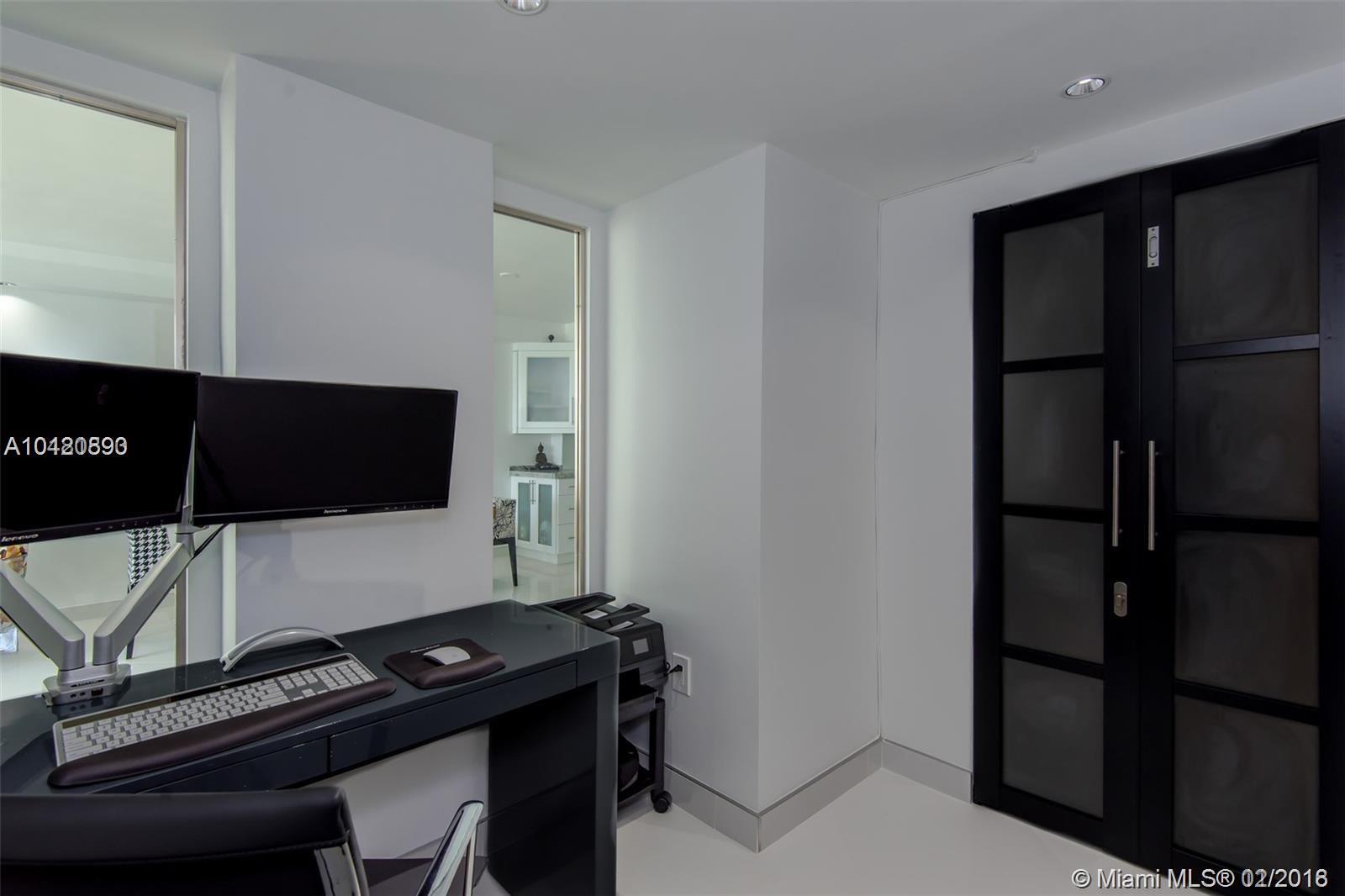 The most amazing unobstructed breathtaking Intracoastal, Bay & City View from this completely renovated 2 bed. 2 bath. + Den. This home features a great open kitchen with Custom Cabinetry, Gourmet Kitchen with S/S appliances, Built-In Wine Cooler, Granite Counters, Flawless Porcelain Flooring Throughout, Recessed lighting, all new bathrooms, Custom Built Home Office with plenty of natural light and much more. Located across the street form the beach, this full service building features: Swimming Pool, BBQ Area, Tennis Courts, Exercise Room, Community Room & more. 24-hour Valet & Concierge services. Easy to show.