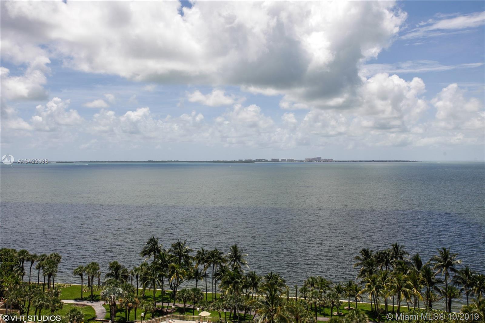 Largest 2 bedroom, 2 bathroom with East views of the Open Bay and Key Biscayne. Beautifully updated with marble floors in main living areas and updated kitchen with stainless steal appliances. The kitchen is semi-open with a pass-through opening facing the dining room. Other features include impact sliding doors and windows, spacious bedrooms, updated bathrooms and 3 closets including a large walk-in closet in the master bedroom. Live in paradise on a secure guard gated 20 acre island with full services, lots of amenities and a marina. Perfectly located in Coconut Grove and close to downtown Miami, Brickell and Miami Intl. Airport.