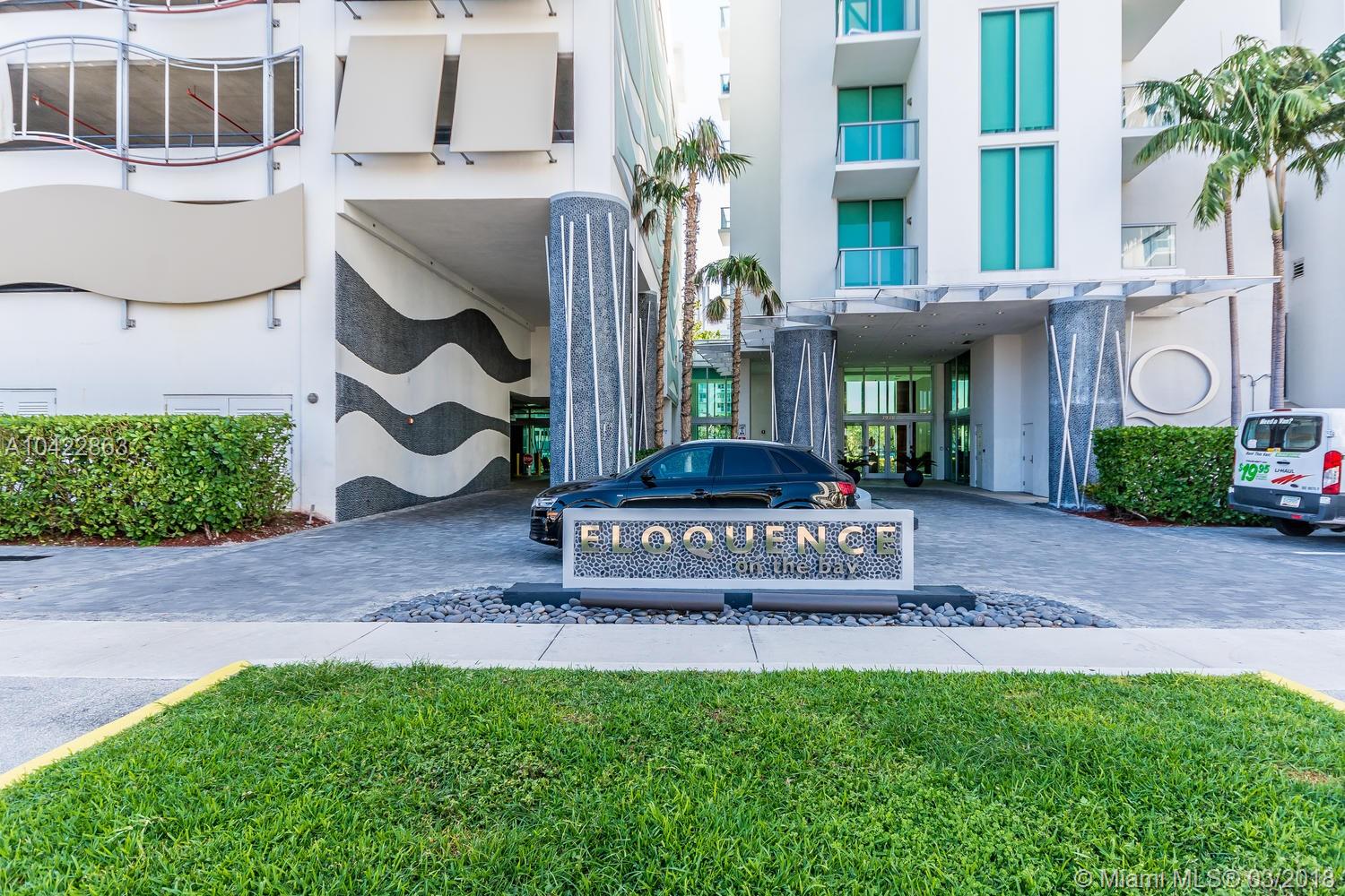 Nicely furnished unit w/views of Biscayne Bay,1bed/2bath+DEN (den can be 2nd bedroom, it has a closet in it). INCREDIBLE VIEWS to marinas, bay and sunset!!! Large balcony, washer and dryer inside, floor to ceiling Impact sliding windows (9ft tall)SS appliances,cooking island w/SS hood. Eloquence is a young new building located in the beautiful North Bay Village featuring a state-of-the-art, 2-story fitness center; a sports and recreation area featuring a tennis court, basketball court, putting green, and jogging path; an oversized, in-ground heated jacuzzi; a Mediterranean-inspired trellis promenade leading to a luxurious pool deck with cabanas; and access to the island’s private club and marina, offering jet skis, sailboats, water skiing, and more.