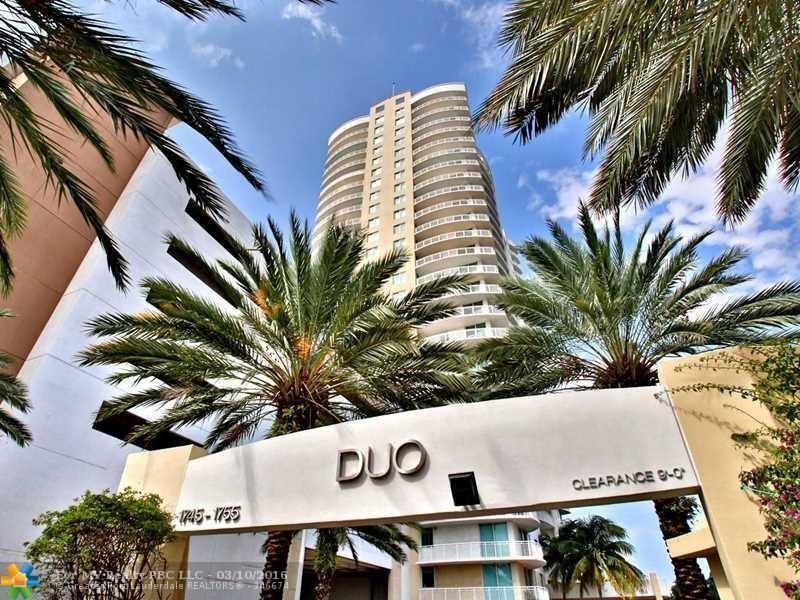Enjoy an excellent location with an extraordinary view! DUO is within walking distance to the beach, just next to restaurants, food markets and shopping no need to drive to enjoy! Split 2 bedrooms. Marble throughout. Stainless Steel Appliances, washer / Dryer in the unit.T It offers 24 hour security, cyber café, business center, theatre room, pool, gym, tennis court, billiard room and more. TWO CAR GARAGE PLUS VALET PARKING!!! $1,000 BONUS TO BUYER'S REALTOR!!!