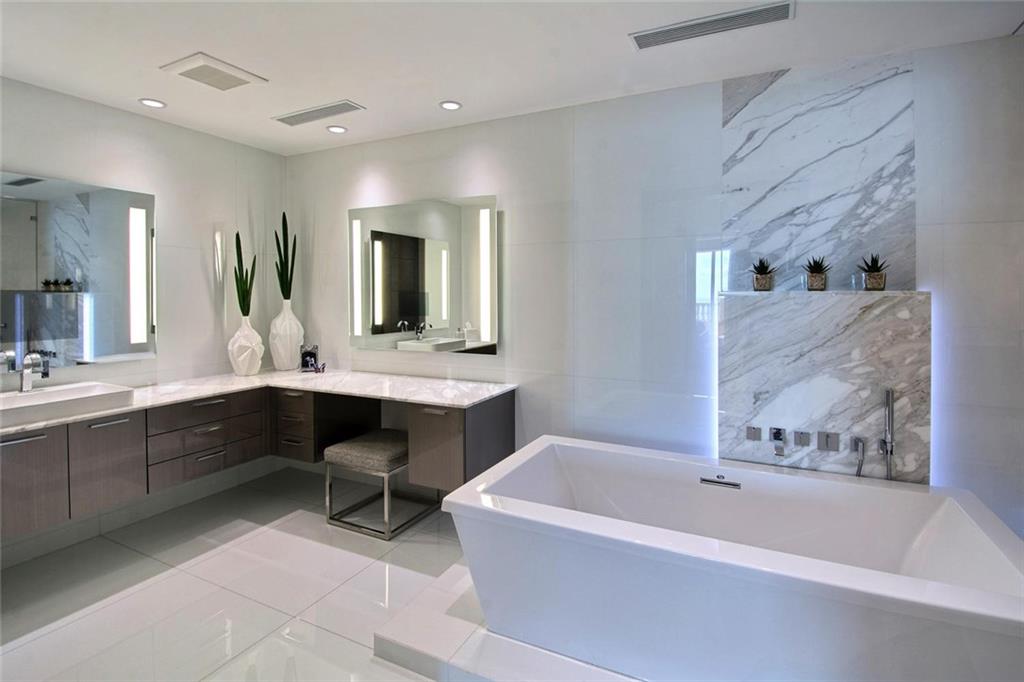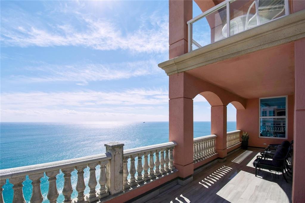 Stunning contemporary Penthouse on the sand with incredible ocean to downtown views. Huge combined open air and covered terrace that wraps almost 180 degrees around the unit. Perfect for the entertainer with massive cook's island and eat-in kitchen, large formal dining with seating for 14 and custom bar--all with views from east to west. Modern split floorplan with his and hers master baths and closets, large laundry and separate den area, Marble plank flooring and more. Must see!