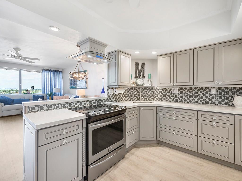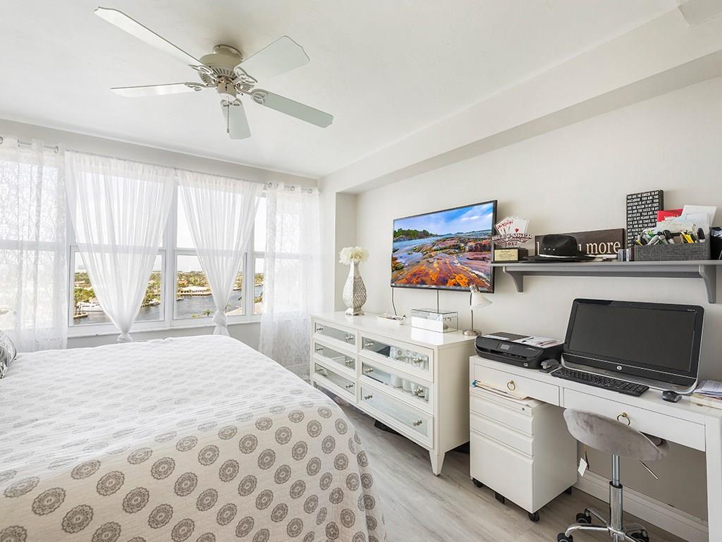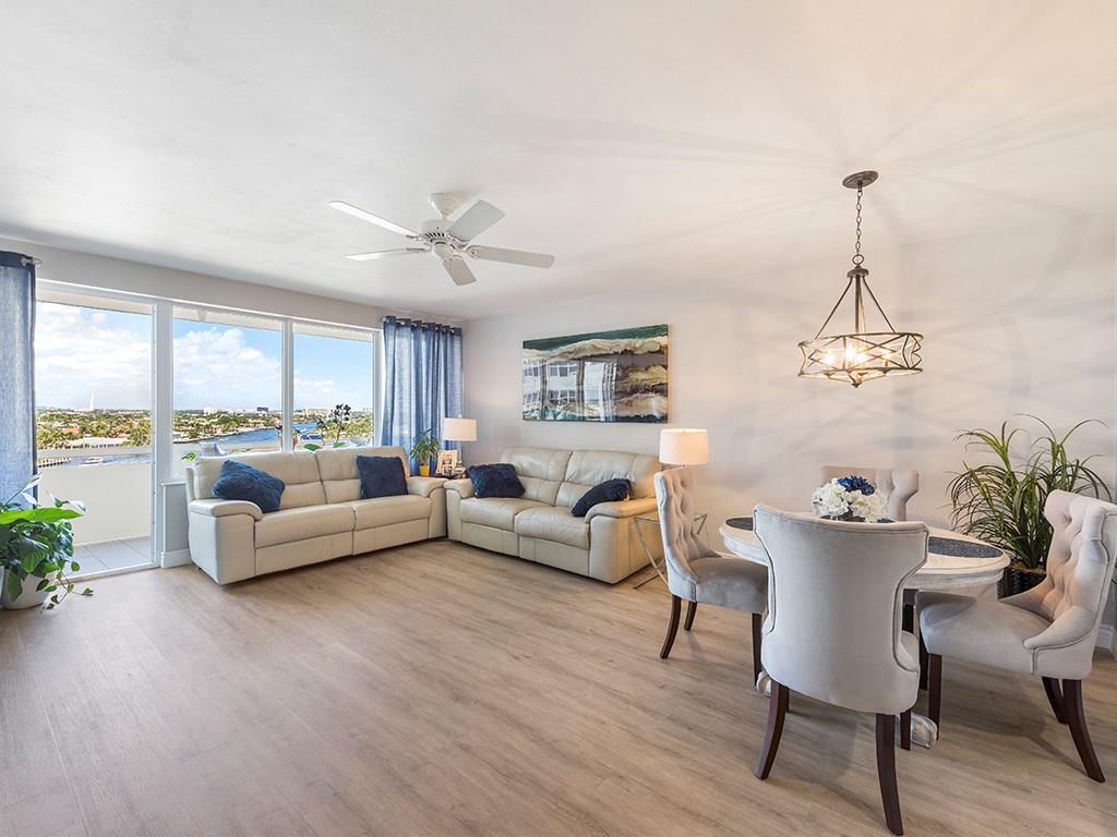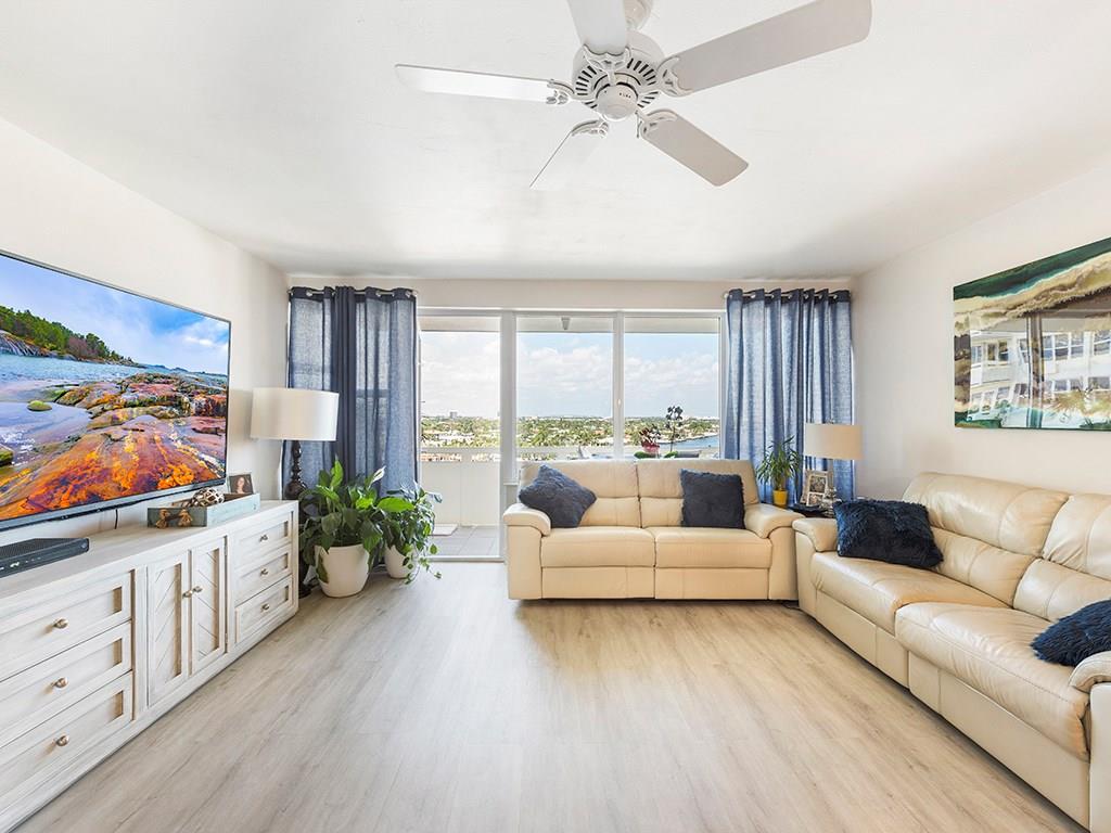 FROM THE COMFORT OF YOUR LIVING ROOM, WATCH STUNNING SUNSET VIEWS AND TRANQUIL BOATS CRUISE ON THE INTRACOASTAL. THE VIEWS FROM THIS SPACIOUS 1 BEDROOM/ 1 BATH ARE BREATHTAKING! THE UNIT IS FULLY UPDATED AND TASTEFULLY MODERN, WITH NEUTRAL GREY WIDE PLANK FLOORING, AN OPEN KITCHEN, AND PLENTY OF STORAGE. STAY COOL ALL YEAR ROUND WITH CENTRAL A/C, IMPACT WINDOWS AND DOORS AND LOW MAINTENANCE. THE BUILDING HAS A HEATED POOL STEPS FROM THE WATER, AN EXERCISE ROOM, & 24 HOUR SECURITY. 1 OWNER MUST BE 55+