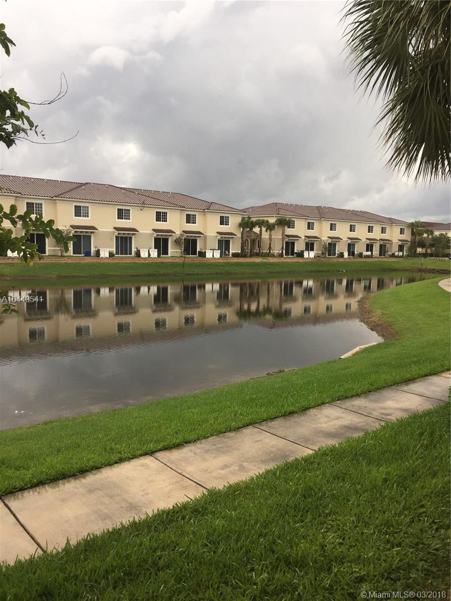 Bright and spacious 2 bed & 2.5 bath with cover garage Townhome in Calabria Residences Community in Miramar. Porcelain flooring on 1st floor & carpet upstairs. Hurricane impact windows, glass shower enclosures. First and 2nd floor feature 9 ft ceiling, granite countertops in kitchen. Nice view over internal lake