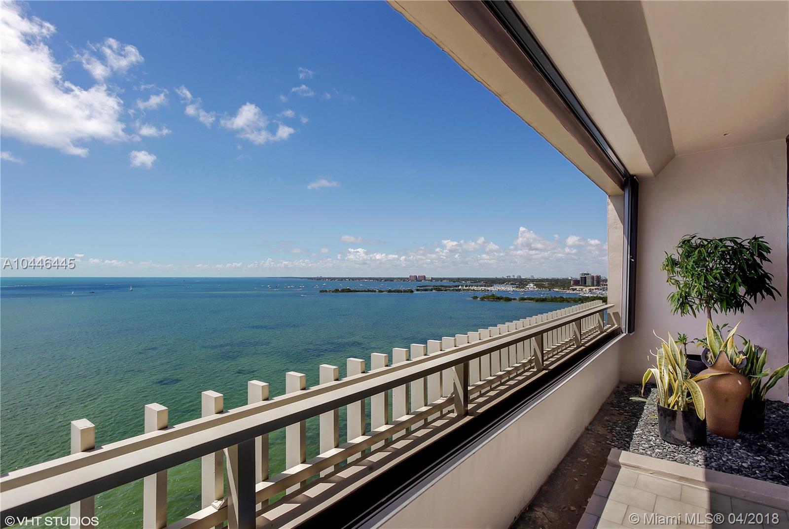 Never available 01/03 double penthouse with the most amazing panoramic water views in Miami has finally arrived on spectacular Grove Isle! Special features include: Floor to ceiling glass, extensive art lighting, custom closets, fabulous built-ins, a stunning custom art deco wood-paneled library, his and hers separate offices, and a large open eat-in kitchen. The tremendous master suite offers his and hers baths, fur storage closet and a butler’s pantry. Expansive terraces for entertaining! This is a once in a lifetime opportunity!