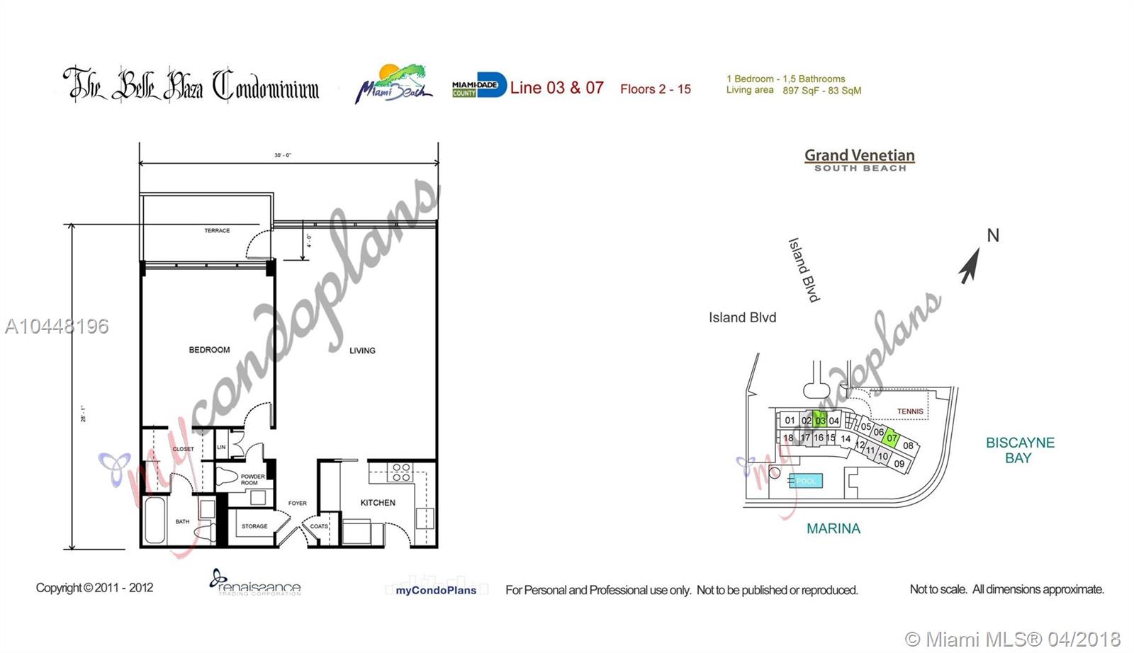Great bayviews from this bright and spacious 1-BR / 1.5 BTH at Belle Plaza condominium, on Belle Island. North waterviews from both living-room and bedroom. Multiple storage options, including a walk-in closet. Upgraded bathrooms. Semi-open kitchen. Laminate flooring. Open balcony. Common laundry on the same floor. 1 parking space. Full service building with on-site management and security, and multiple amenities: bayfront heated pool, jacuzzi, bbq, gym, tennis court. As for pets, only cats are allowed. Floorplan in the pictures.