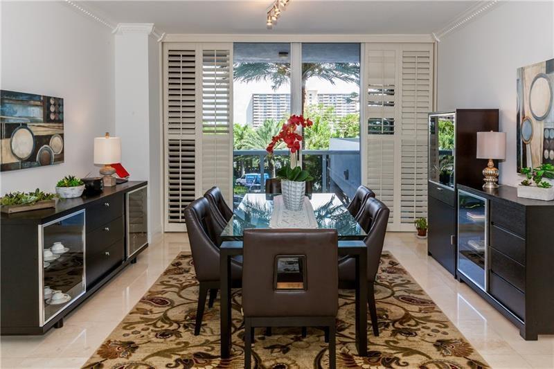 MAGNIFICENT RESIDENCE | EXPANSIVE TERRACE | POOL LEVEL. Immaculate and modern unit featuring travertine marble floor, solid wood cabinets & doors. Expansive Patio in Private Garden Oasis, perfect for outdoor living with captivating ocean breezes, just a few steps from the resort-style pool, enchanting gardens & the beach. Designer light fixtures, top-of-the-line appliances. 1 Parking space & storage unit. 10 Acres of resort-amenities w/tennis, cabanas, 2 pools, cafe, 24hr security, & valet