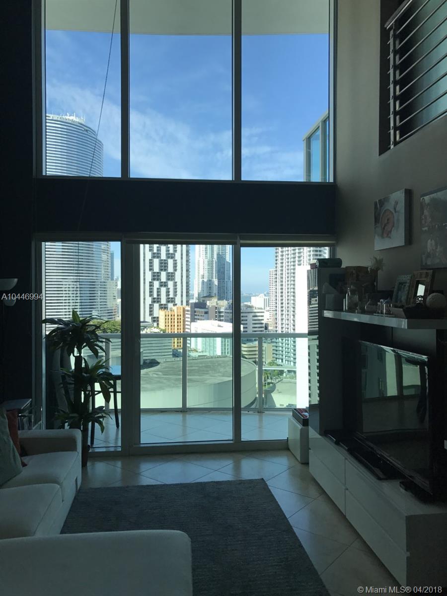 Charming and distinctive two story closed loft style unit with 2 Bed/ 2 full Baths, 2 private balconies, suitable storage closets, and astonishing Bay and Miami river views. Spacious Master bedroom on second floor with large walk in closet, European Style kitchen with stainless steel appliances, wood floors in stairs and marble floors throughout living areas. Enjoy the irresistible and luxury building amenities: 2 Pools, Gym, BBQ areas, Spa, Valet parking, Business center, 2 Club rooms, 24 Hr concierge and security. Steps away from Brickell Citi Center, Wholefood, Brickell and Downtown shops and restaurants and Metro-mover station. 2 parking spaces.