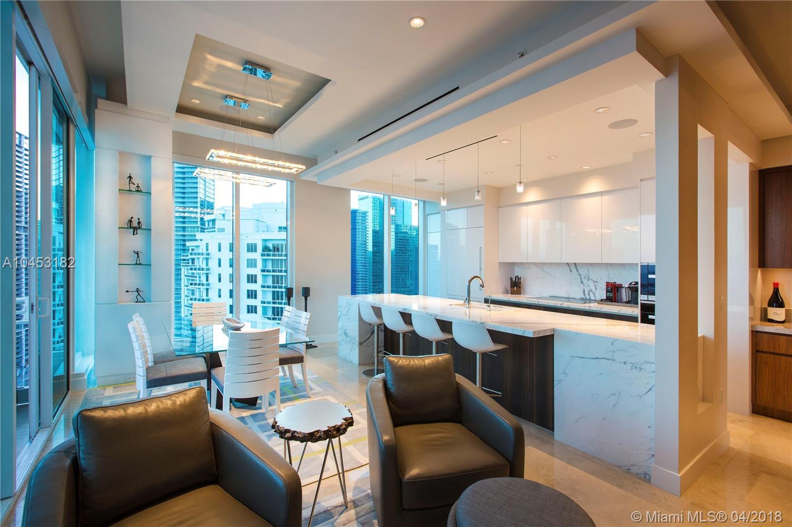 Like a dominant bird of prey, perched high above one of the worlds most beautiful cities. You will enjoy this totally updated exquisite condo over miami. With some of the most exhilarating views of the Ocean, Biscayne Bay, Miami Beach and Key Biscayne, from High above the mouth of the Miami River, you will witness the beauty of each and every day, from sunrise to sunset. Snaidero, Miele, Sub Zero, and Carrera marble will enable your culinary endeavors while home automation and technology surrender some of the most mundane tasks to the push of a button. 4 elegantly appointed bedrooms with ample balconies, 4.5 baths with beautiful stone finishes. 3 dedicated parking spaces by the lobby + valet, private elevator foyer, rationalized storage and a home you won't want to leave.