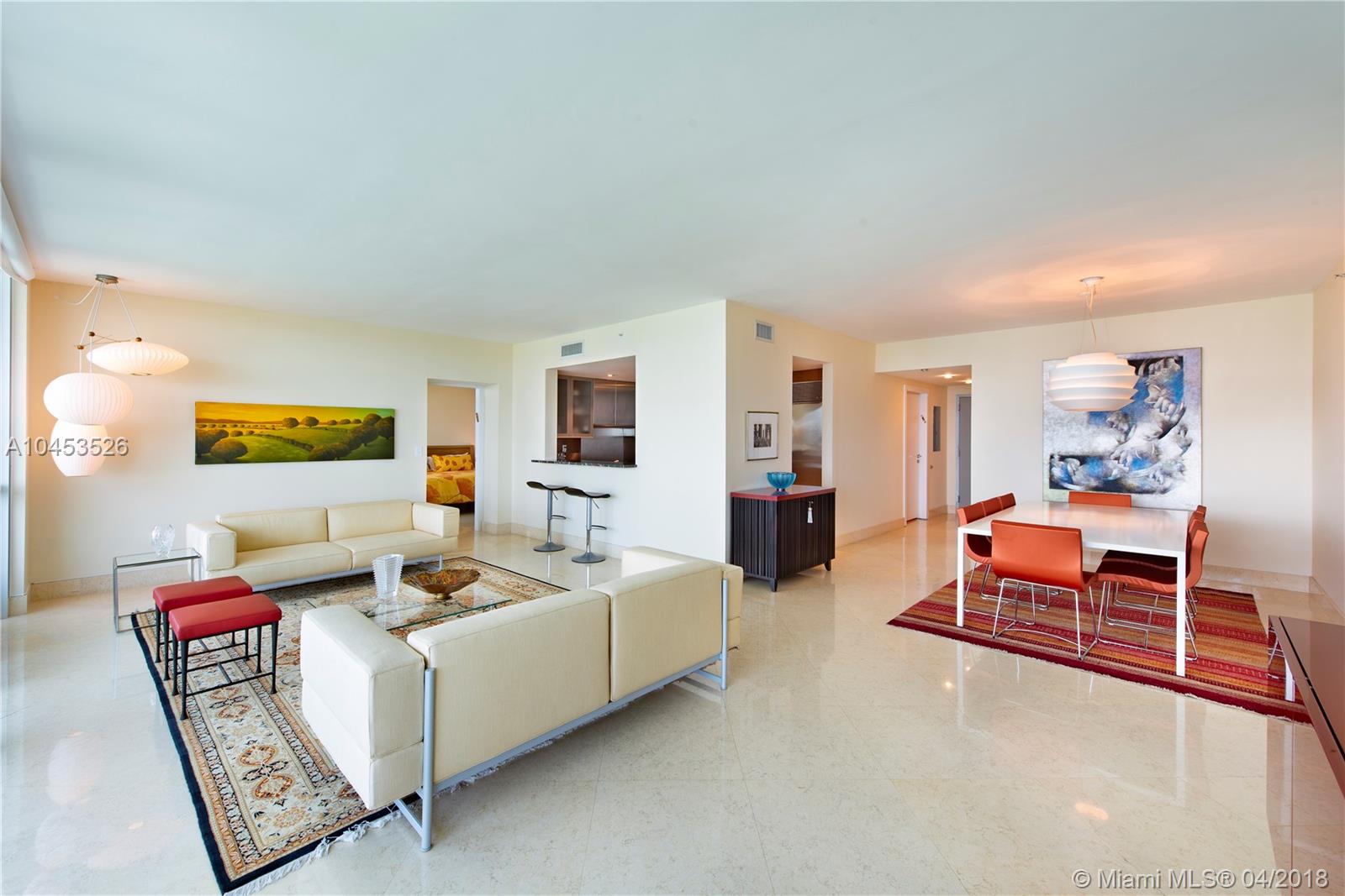 Gorgeous Sunset Views from this 2br + enclosed den, 3 full baths, with unobstructed direct Bay, Intracoastal & Miami skyline views from every room. Spacious den can be used as private 3rd bedroom or office. Marble floors, floor to ceiling windows with electric blinds and large terrace that runs the length of the apt. Kitchen equipped w/sub-zero fridge, wine cooler & S/S appliances + washer/dryer. Master bath with Jacuzzi tub, separate shower & bidet. This totally renovated full service tower offers amenities that include state of the art gym, heated pool with sun all day, 24 hour very friendly concierge and valet parking. Pets welcome!