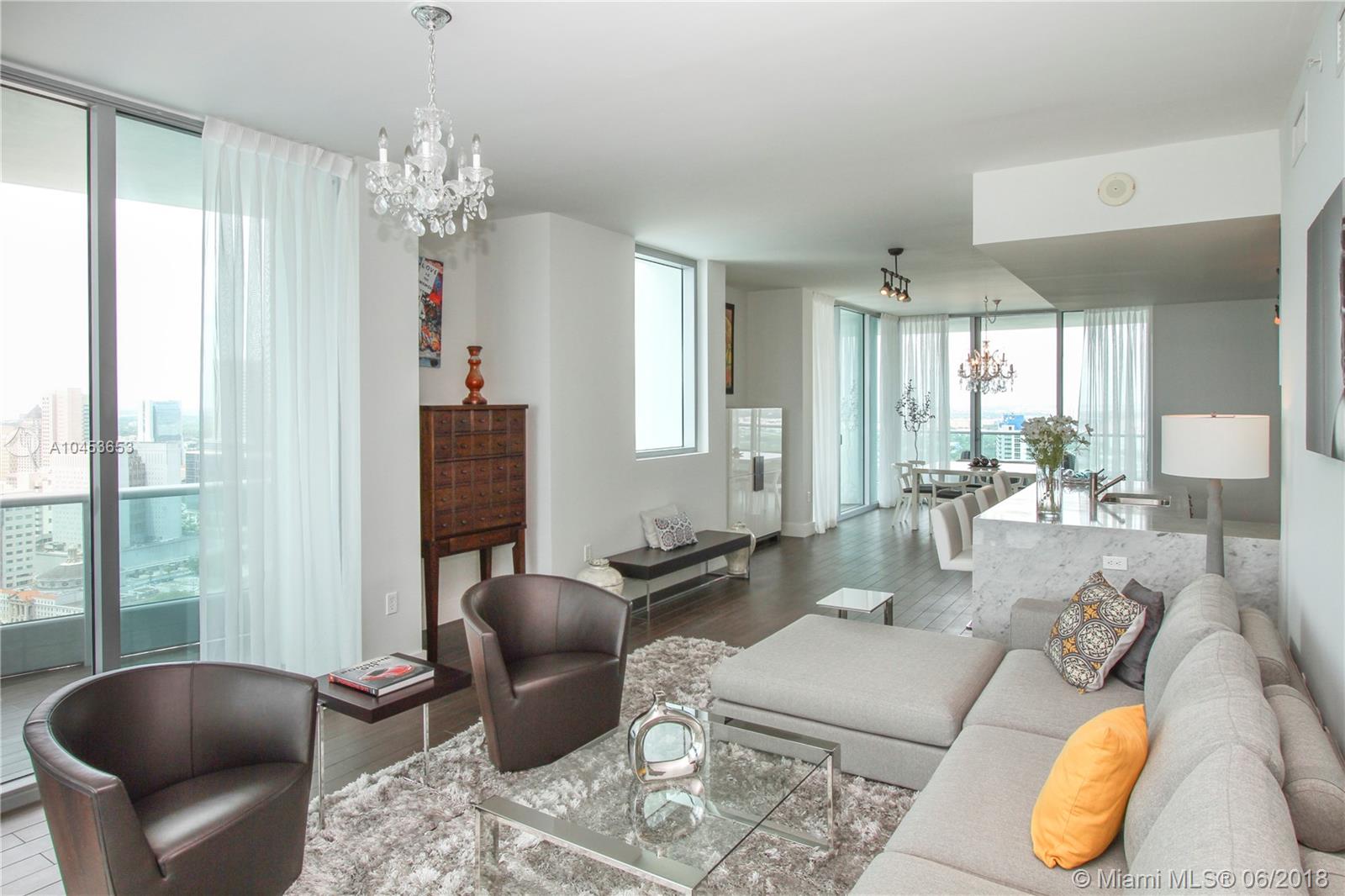 **Completely Turn-Key** Breathtaking unobstructed views from 3 separate balconies, watch the sunrise in the east and the sunset in the west! Completely furnished corner unit, 3 BDR/3.5 BA converted to a 2 BDR + Den, with open concept floor plan and floor-to-ceiling windows. Features private elevator & foyer, top of the line Miele appliances, and spacious walk-in closets with built-ins. The most sophisticated luxury condo located in the heart of Downtown Miami. Walking distance to restaurants, sporting events, concerts, museums, theater, and more.