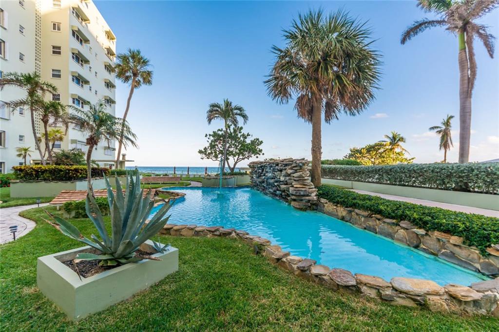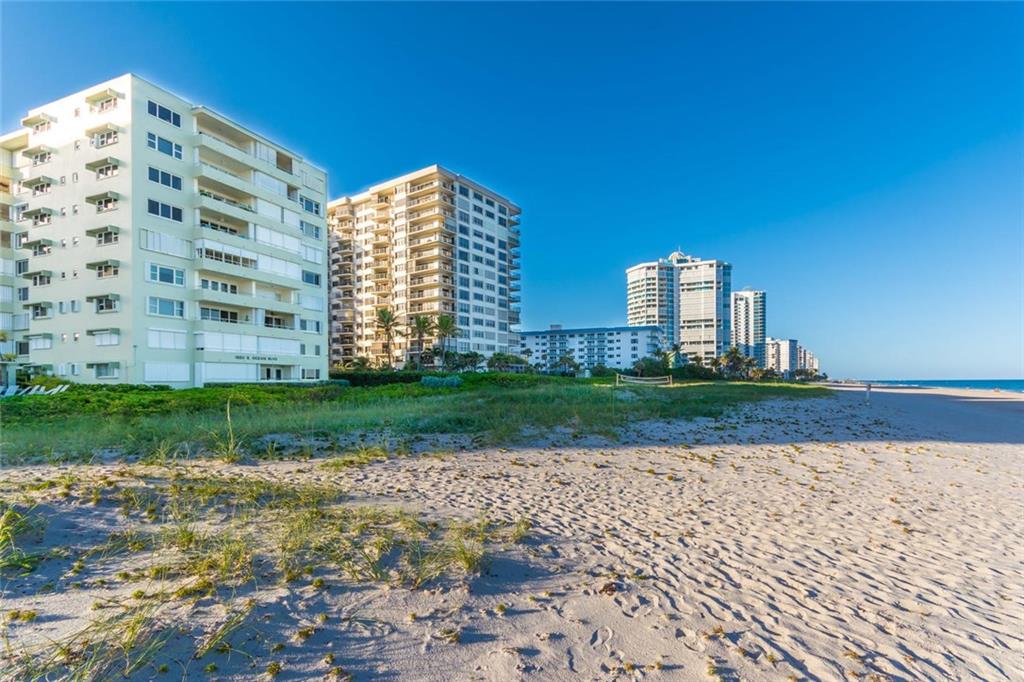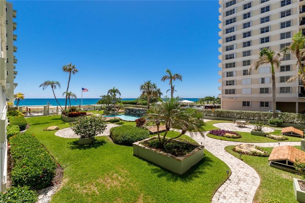 Move-in condition offers amazing ocean and garden views. Neutral tile floors throughout. Enjoy daily sunrises + ocean breezes on the large + private balcony. Beautifully remodeled guest bathroom. Over-sized exterior storage. The heated pool and beach pavilion with BBQ invite you to relax. Well kept building close to fabulous restaurants & shopping. Ride the free Pelican Hopper Shuttle to the center of Lauderdale-By-The-Sea.