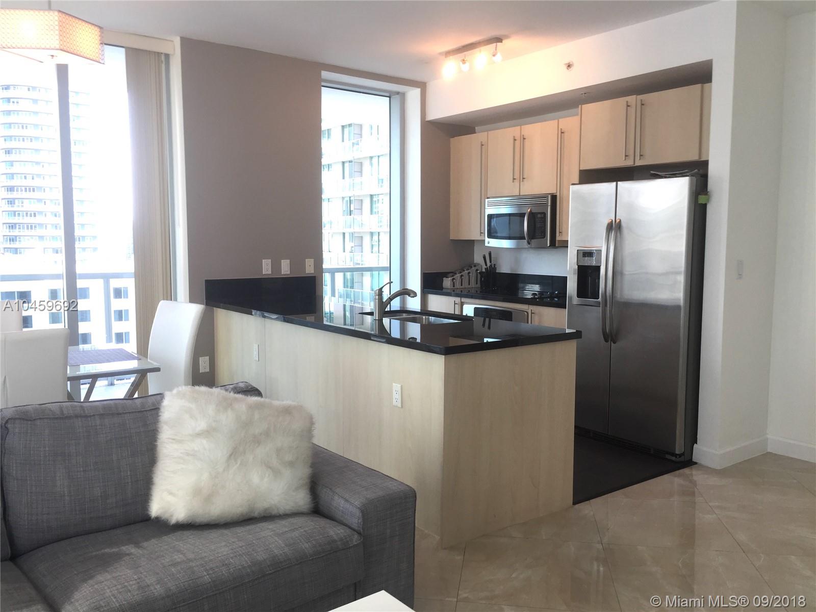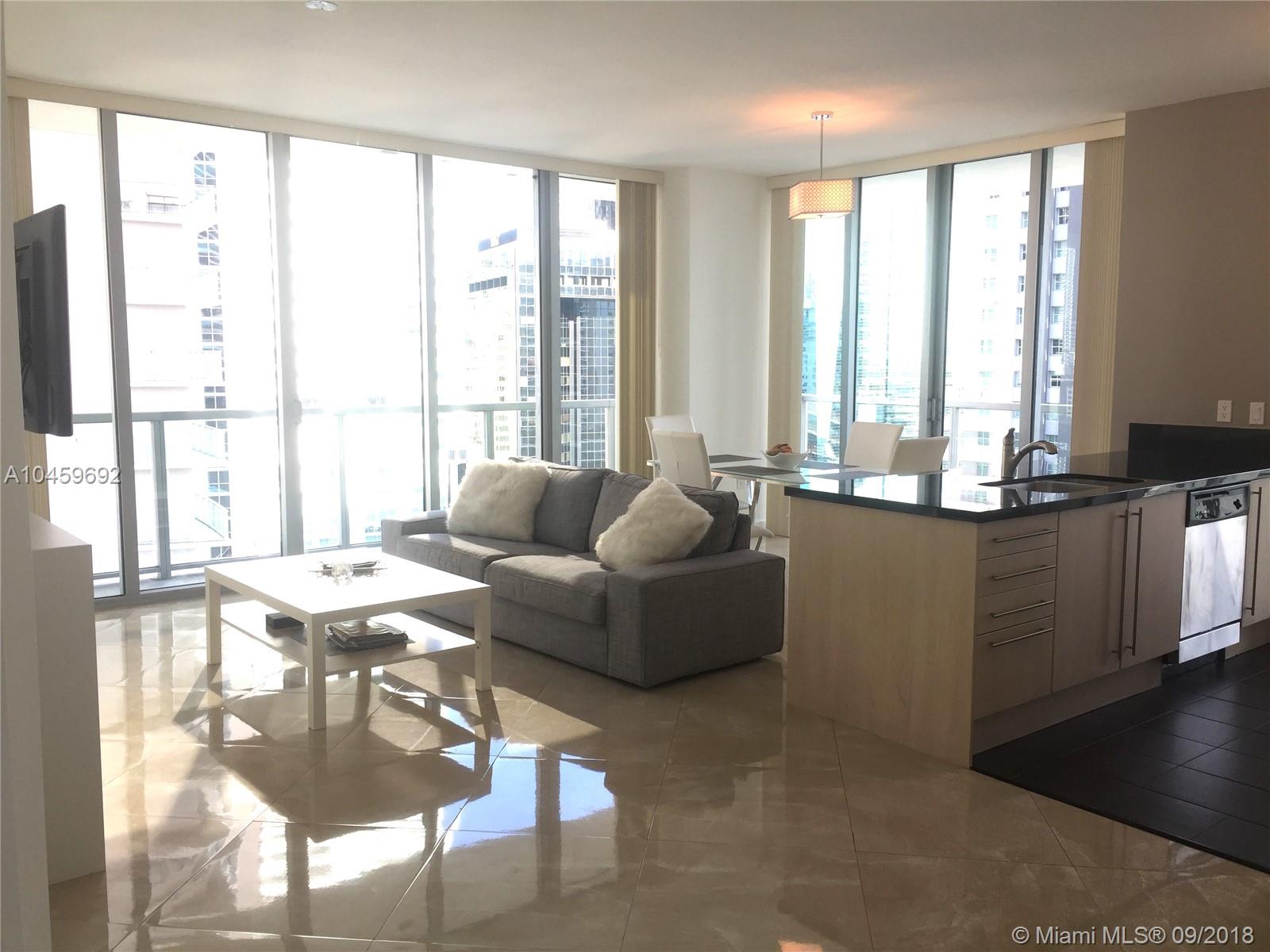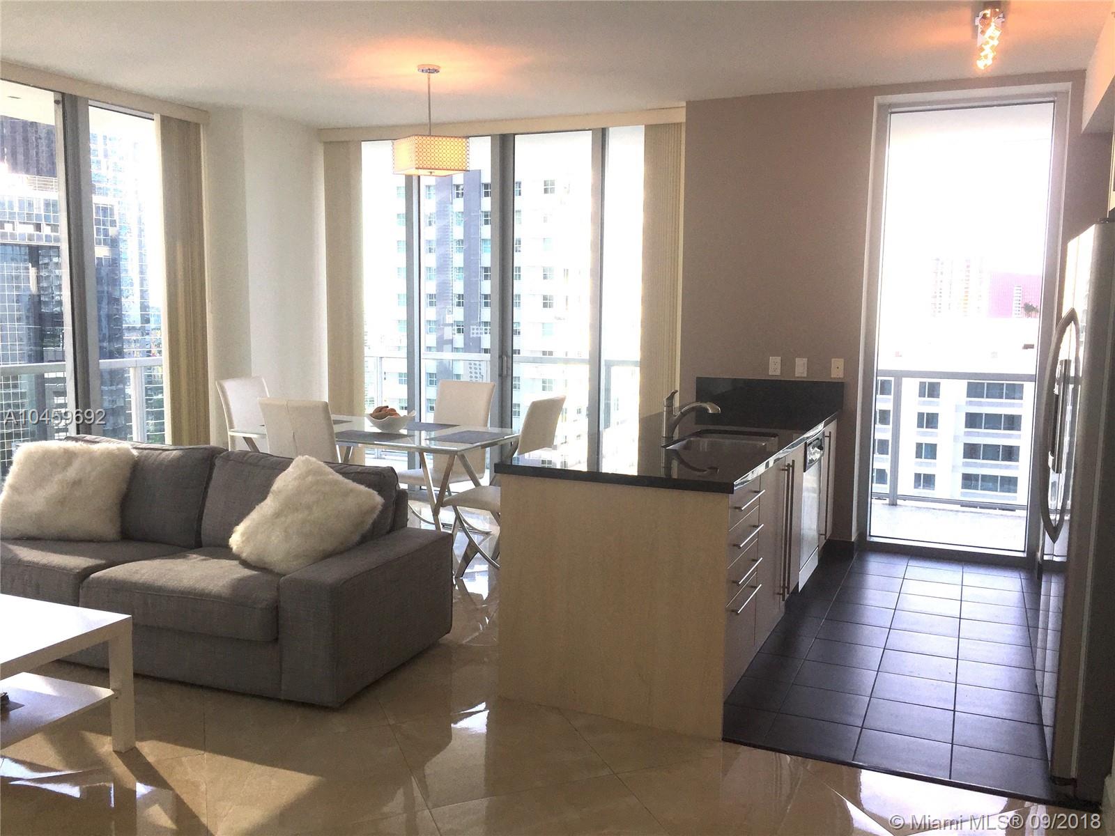 Impeccable SE corner unit with open floor plan and wraparound balcony. Living area with floor to ceiling hurricane impact glass on east and south side offering spectacular views. The modern kitchen offers stainless steel appliances and granite counters. Two spacious bedrooms with two full bathrooms and access to the balcony. Master bedroom with walk-in closet, separate tub and shower and double sink. This unit has beautiful porcelain tile throughout, new modern lighting and washer/dryer in the unit.