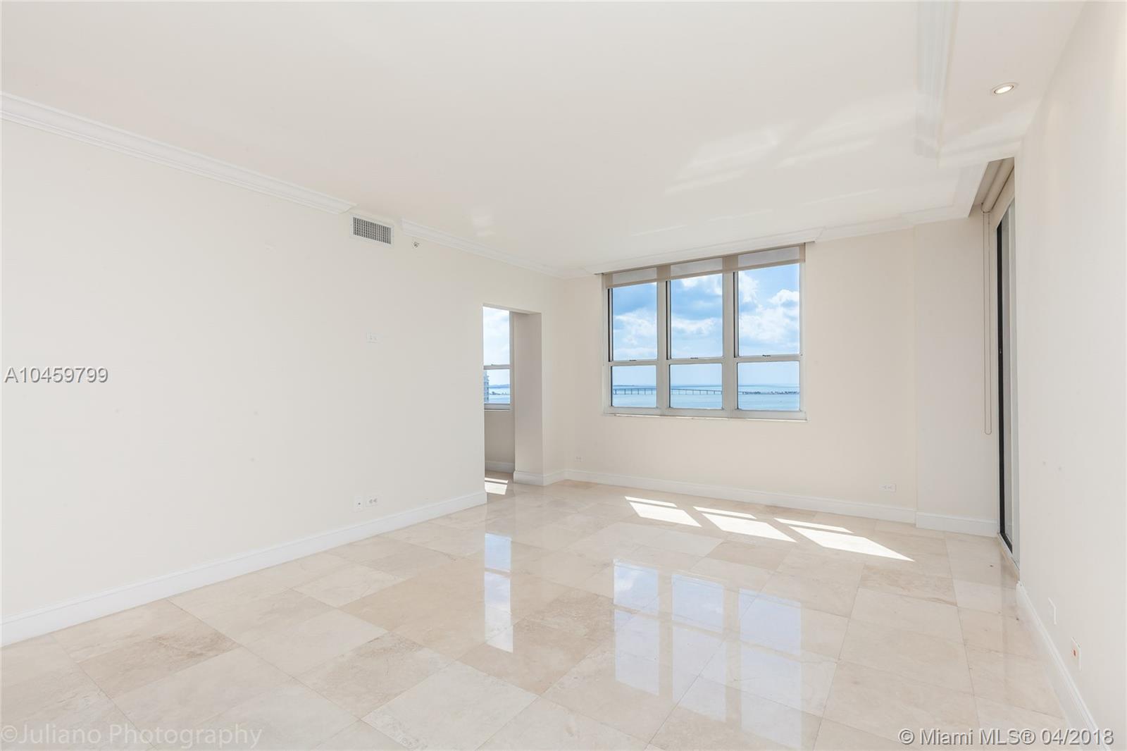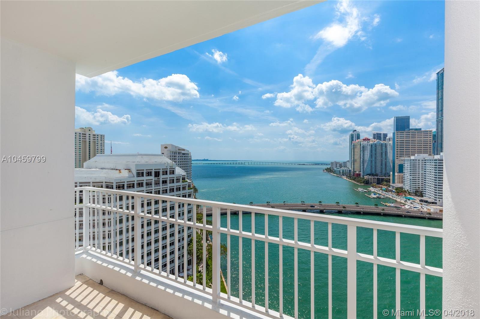 Large corner unit at Courvoisier Courts Condo offers the best in luxury, views and location within the exclusive Brickell Key Island. This 3 Bedroom and 2.5 Bathroom's include gourmet kitchen with high end finishes and marble flooring throughout. Enjoy captivating views from the private balcony. Luxurious amenities at Courvoisier Courts condominiums include a fully-equipped, two-story fitness center, large heated pool, spa, racquetball, squash and croquet courts, business center, concierge, valet and covered parking, conference room and much more. 2 assigned parking spaces, valet for guests, and storage.