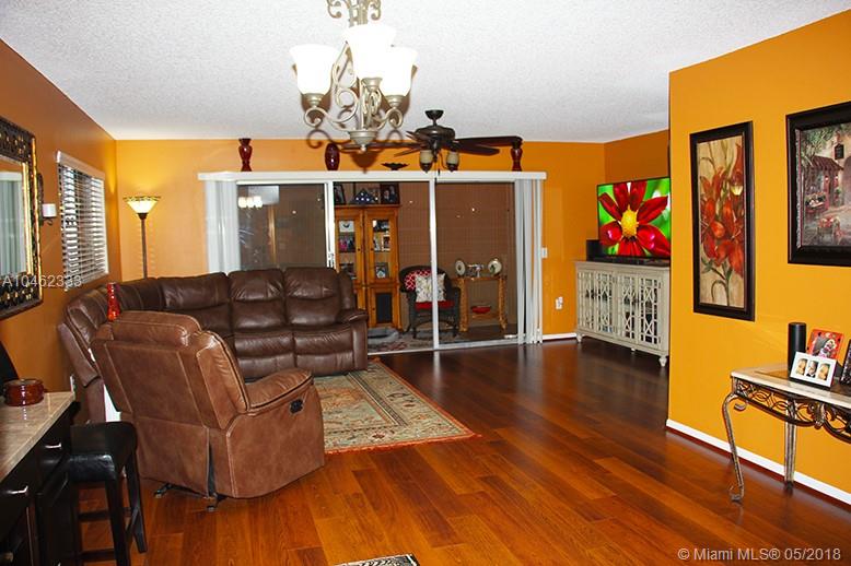 Beautiful 2 bedroom, 2 bath corner unit condo with many upgrades and an open designed concept. Large eat in kitchen with wood cabinets and granite counters. Patio area and living room has water view. Washer and dryer inside unit. Enjoy all the amenities offered at Century Village with courtesy transportation, club house and many other activities and clubs available. Warranty on all appliances and AC. Located near shopping, restaurants, City Hall, transportation and more. Must see.