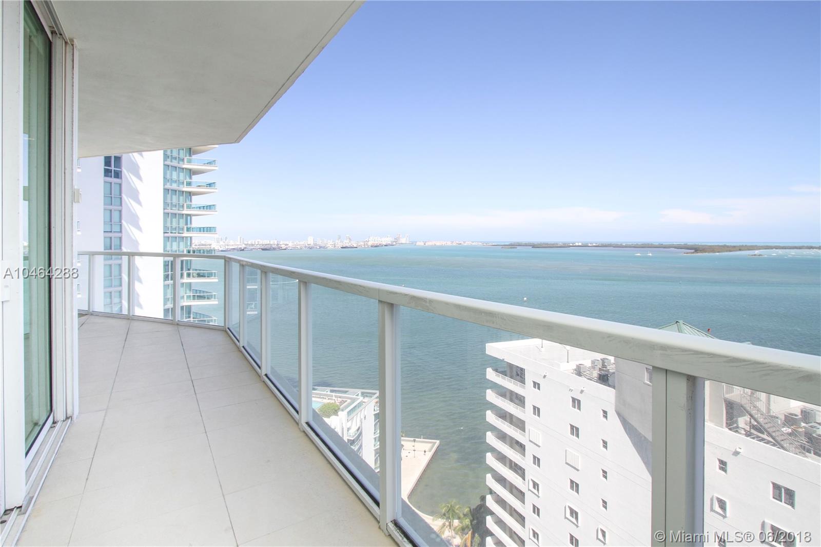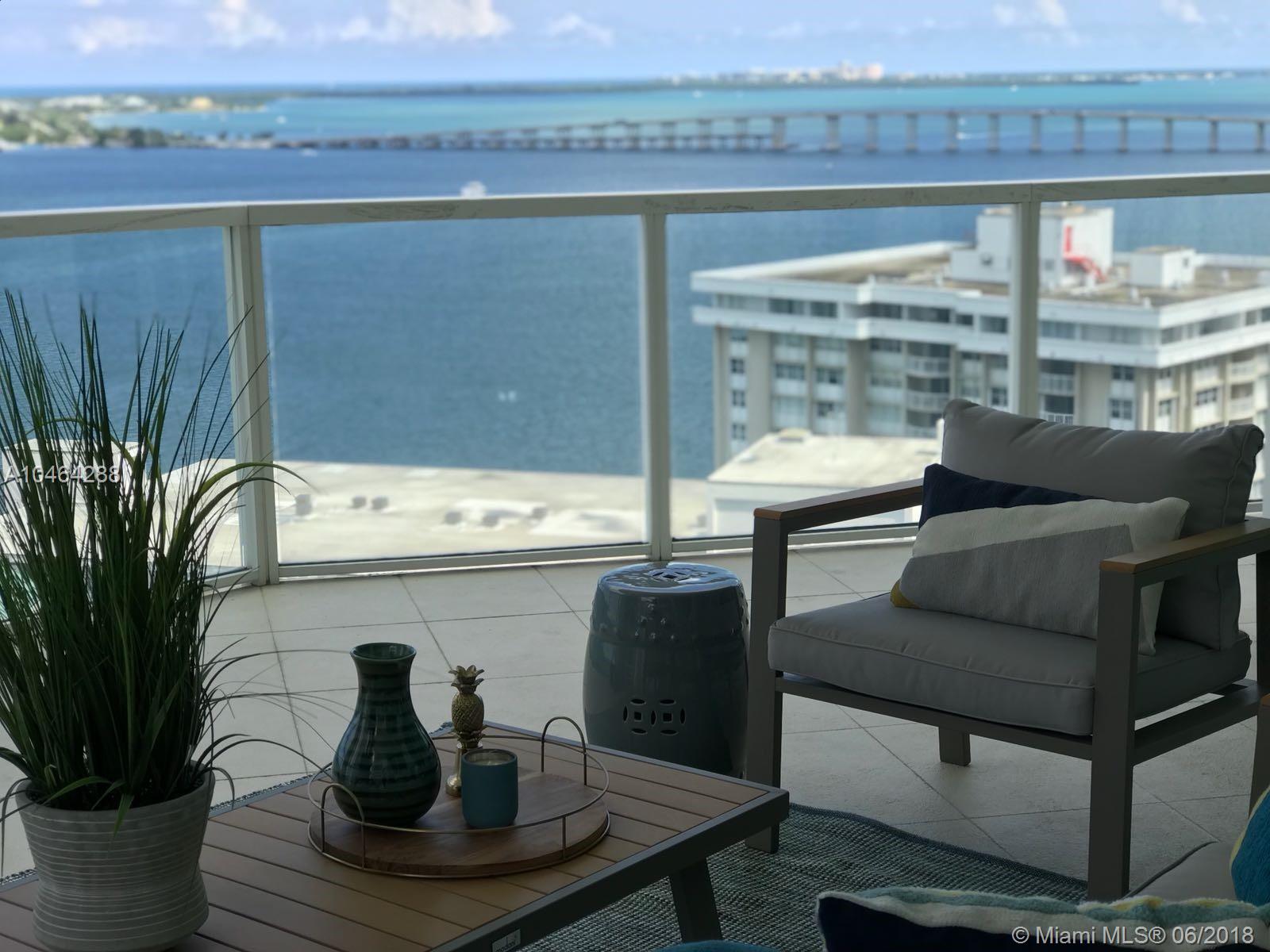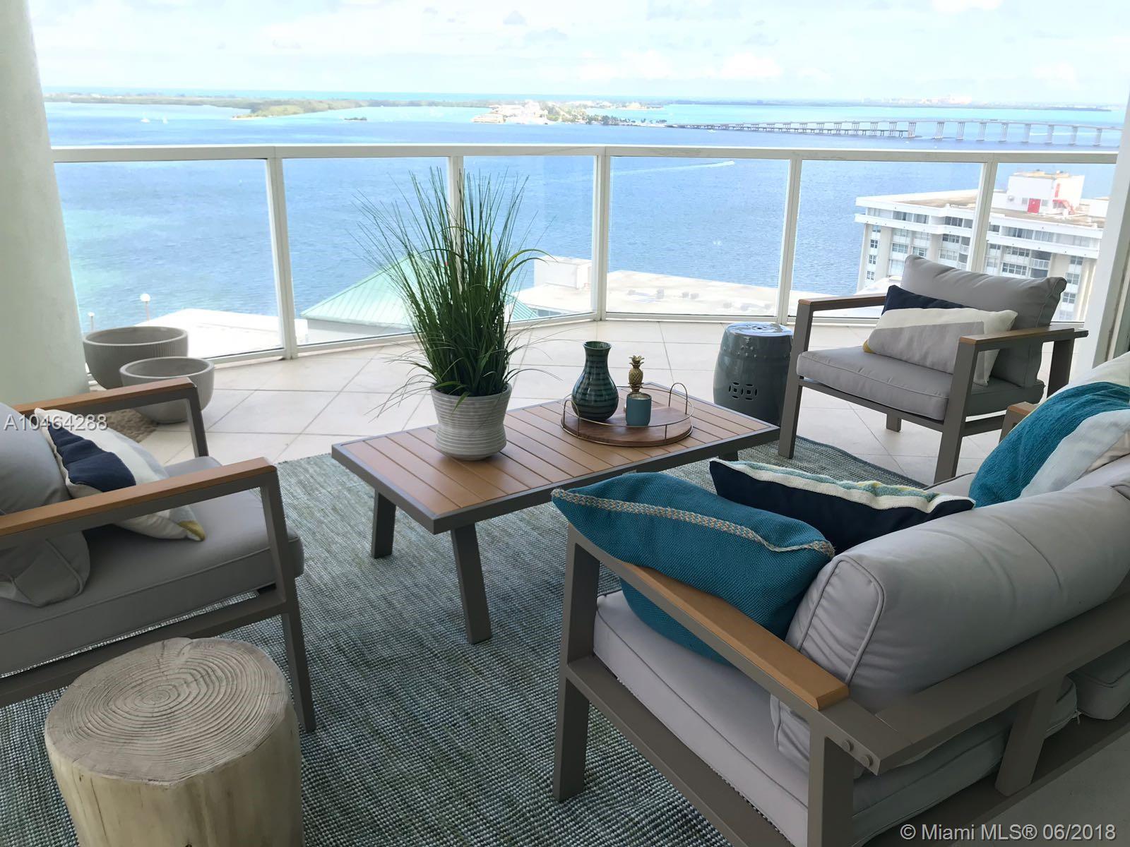 MOTIVATED SELLER! Spectacular unobstructed Biscayne Bay views from one of Brickell's largest terrace, your own outdoor living and dining room. Incredible glass wall views of the Port of Miami, Key Biscayne, Fisher Island and the Miami Skyline. High floor, very large (1594 SF) Corner 2 bedroom apartment with 2 1/2 baths. Brand new high end renovation with top of the line appliances. Other apartment features include high impact windows and sliding doors, dropped ceiling with built-in designer Led lighting, large walk-in closet, utility closets, washer/dryer. Second bedroom has its own balcony. Extra large closet can also be used as a Den. Resort style amenities include rooftop infinity pool, fitness center, sky club, business center, valet parking for guests and much more.