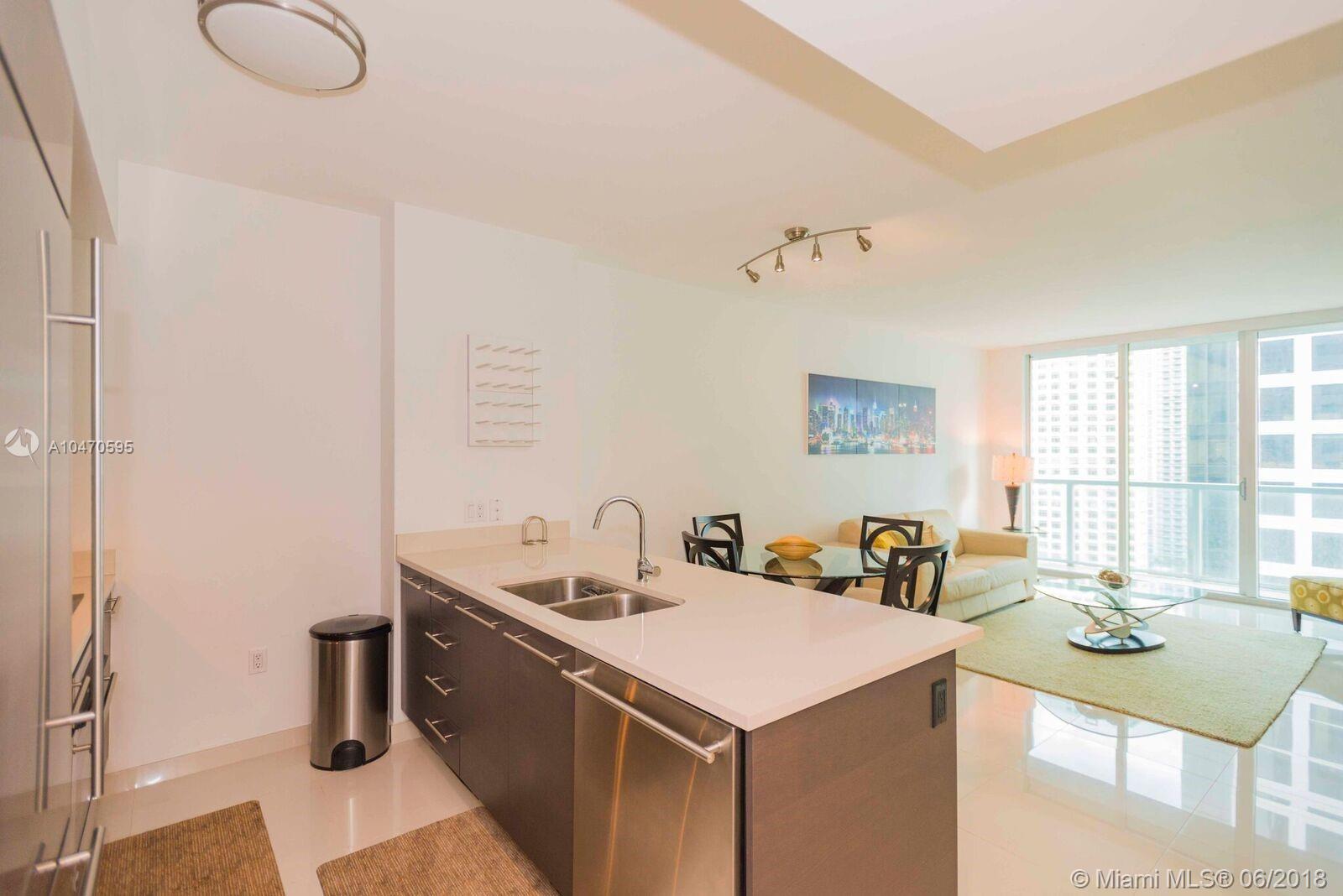Beautiful and spacious remodel unit with gorgeous bathroom and closets, European Kitchen, Quartz countertop, Stainless Steel Appliances, amazing views of the city vibrant skyline and some water views. Located in the heart of Miami's Brickell, 500 Brickell offers a dynamic lifestyle with great amenities, heated rooftop 42nd floor pool & sundeck a separate 11 floor pool, fitness center, sauna & steam room, club & theater rooms, wine cellar, walking distance to fine restaurants, nightlife, mall, markets, banks, stores. Enjoy luxury urban living the heart of Brickell Area. Best price unit and easy to show