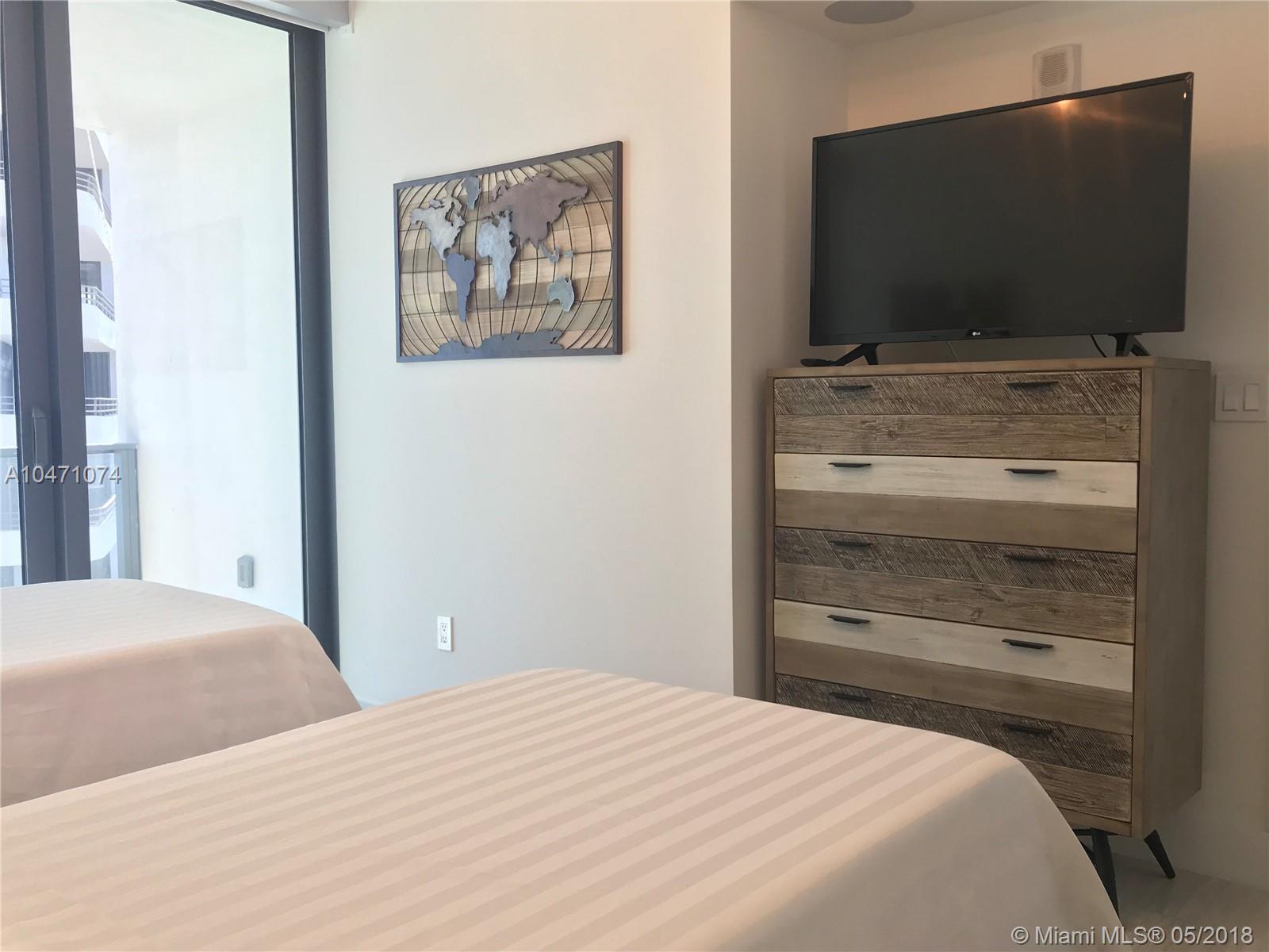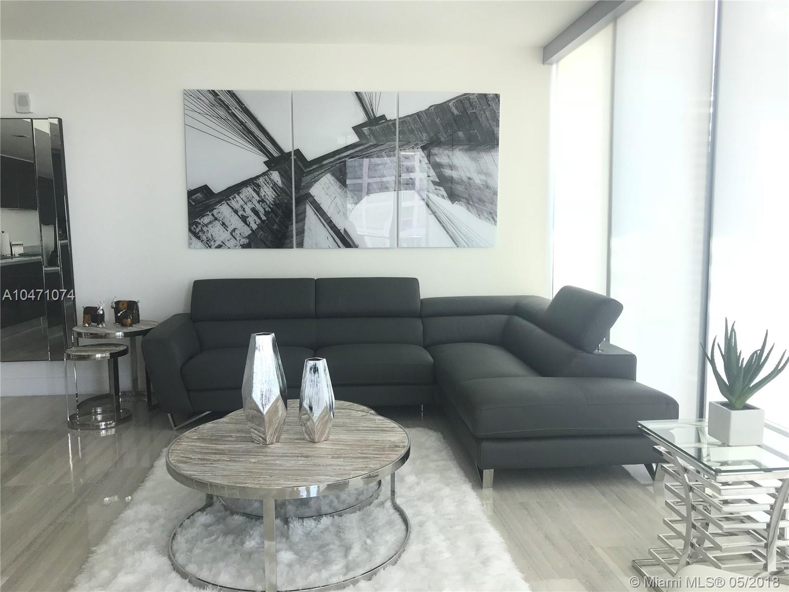 This unit sits on the 19th floor in the desireable 03 Line. It features 2Beds + 2 Full Baths & 1 Half bath and is beautifully furnished. It is ready to move in! Features the IHOME tech. that controls AC, electric blinds, audio, lights and valet parking. The kitchen showcases Italian glass cabinetry, built-in wine cooler, Expresso machine& top of the line appliances. This unique building has state of the art amenities, including an infinity edge pool, dry-cleaning, pet services, 5-mile radius chauffeur, complimentary bikes, and a fitness room with views of the city.This unit comes with 2 parking spaces!