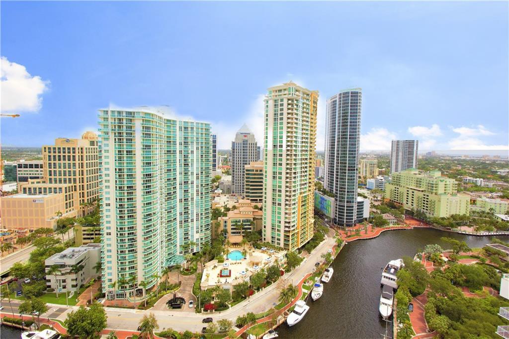 UPDATED, DIRECT RIVER VIEW Unit!! You will not want to miss this 2 bedroom/2 bathroom condo with the most spectacular views! Look East to the Ocean, Down to the river and West to Downtown. Beautiful, modern updated grey wood-look tile floors throughout. New water heater & glass shower doors in both bathrooms! The building has Five Star Amenities including a rooftop pool, Sky lounge, Basketball court, Racquetball Court, 2-Story Gym, 24 hour security and much more. (Can be purchased furnished as well.)