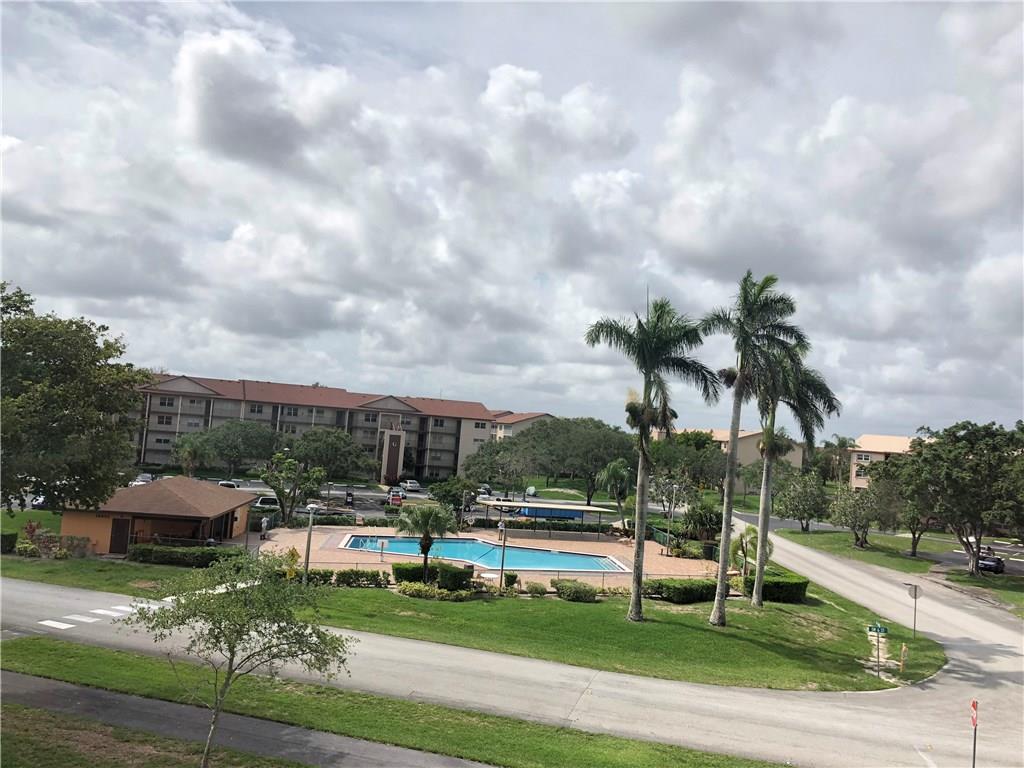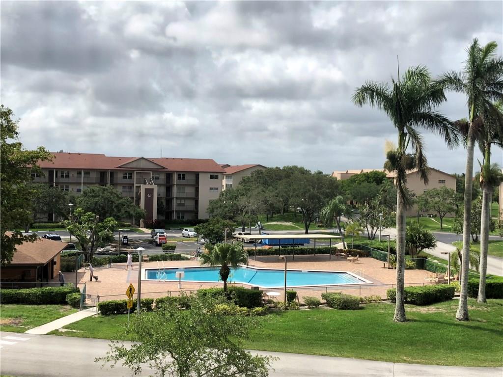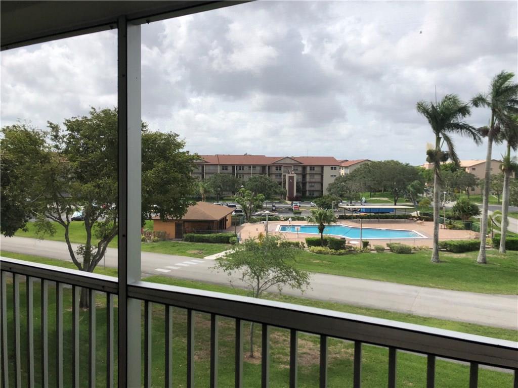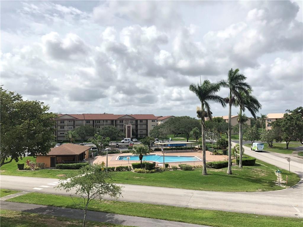 Fantastic pool view from the patio, clean, spacious and well kept "J" Model, 2 beds 2 baths, eat in kitchen, walk in closet in master bedroom, washer/dryer in the unit. Close to the elevator. Located in Century Village of Pembroke Pines, 55+ community. Restaurant, market place, cafeteria, tennis, pools, gyms, free transportation, 24/7 security and nurse station. An amazing Clubhouse, shows, movies, activities, billiards, clubs, etc. water, cable & insurance included in maintenance. OK to rent. No pets