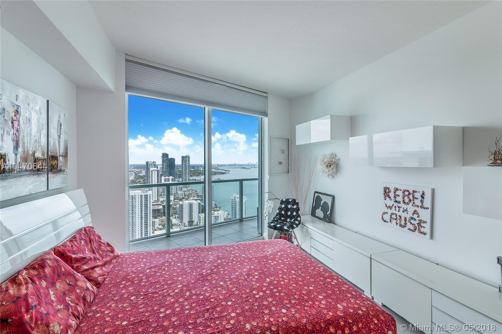 A large 1+den residence available for immediate occupancy, on a high 45th floor with stunning unobstructed views of Biscayne Bay and Miami Beach. The den is used as a second (guest or kids) bedroom or office. Fully remodeled chic unit with white-off contemporary flooring, spacious gourmet kitchen with island and modern touches throughout. Luxury amenities: 24h concierge, valet, convenience store, spa/hair salon, pool, jacuzzi, fitness center, saunas, movie theater and more. Short drive to Brickell, Wynwood, Design District shops and South Beach. Call today!