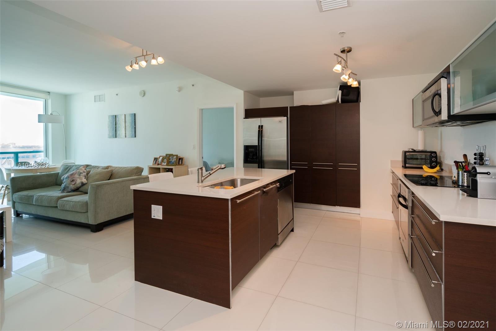 2 bedroom 2 bath Split floorplan. Great views of bay and city. Upgraded Porcelain tile throughout unit and balcony. Lots of closet space and spacious kitchen. Balcony runs length of unit is very roomy. Building has fantastic amenities including 2 pools, incredible gym, sauna, numerous public spaces to unwind and or hold events. Easy commute to Airport, Beaches, Brickell, Downtown, Wynwood and much more. 2 supermarkets are walking distance and lots of great eateries in the area.