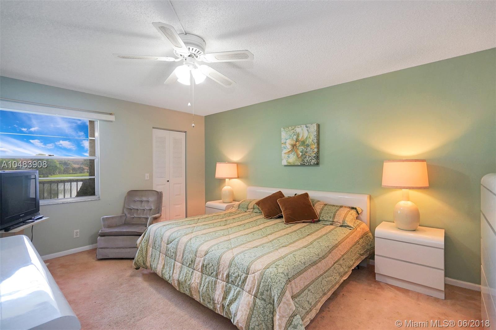 Amazing views of the of Largest Lake in the Community from this spacious 2 bed / 2 bath condo. Great split floor plan with large kitchen and stainless-steel appliances. Laundry room on every floor across from elevator. Large screened patio. Furniture available. Century Village is a 55+ community with endless resort style amenities. It has a million-dollar clubhouse, transportation, 2 fitness centers, 24-hour security, 8 swimming pools, tennis court, movie theater, billiards, pharmacy, cafe, golf and so much more! Clean and move in ready. Priced to Sell! Must own for 2 years before renting.