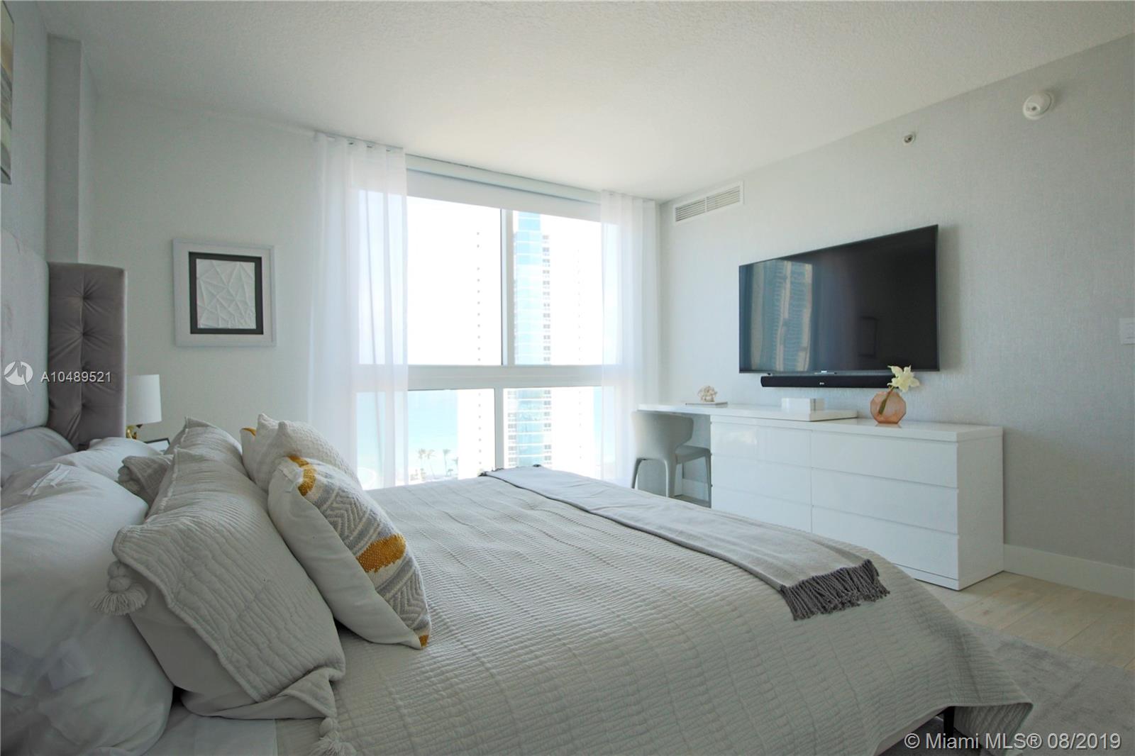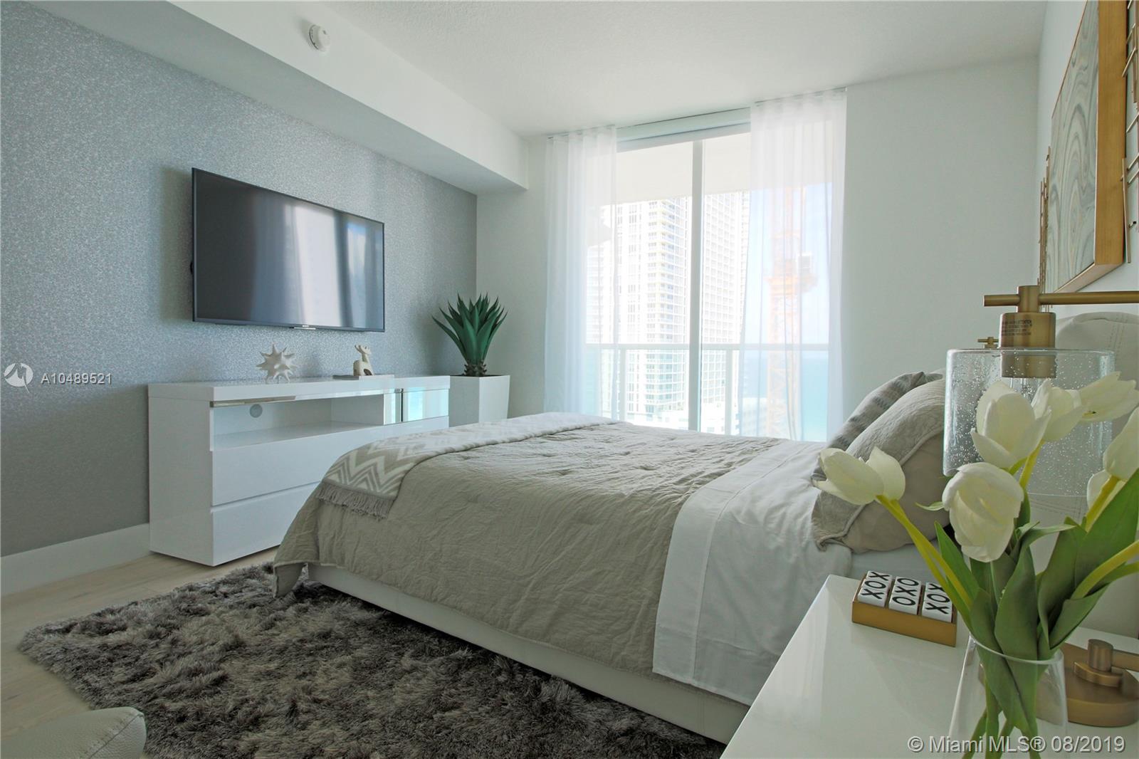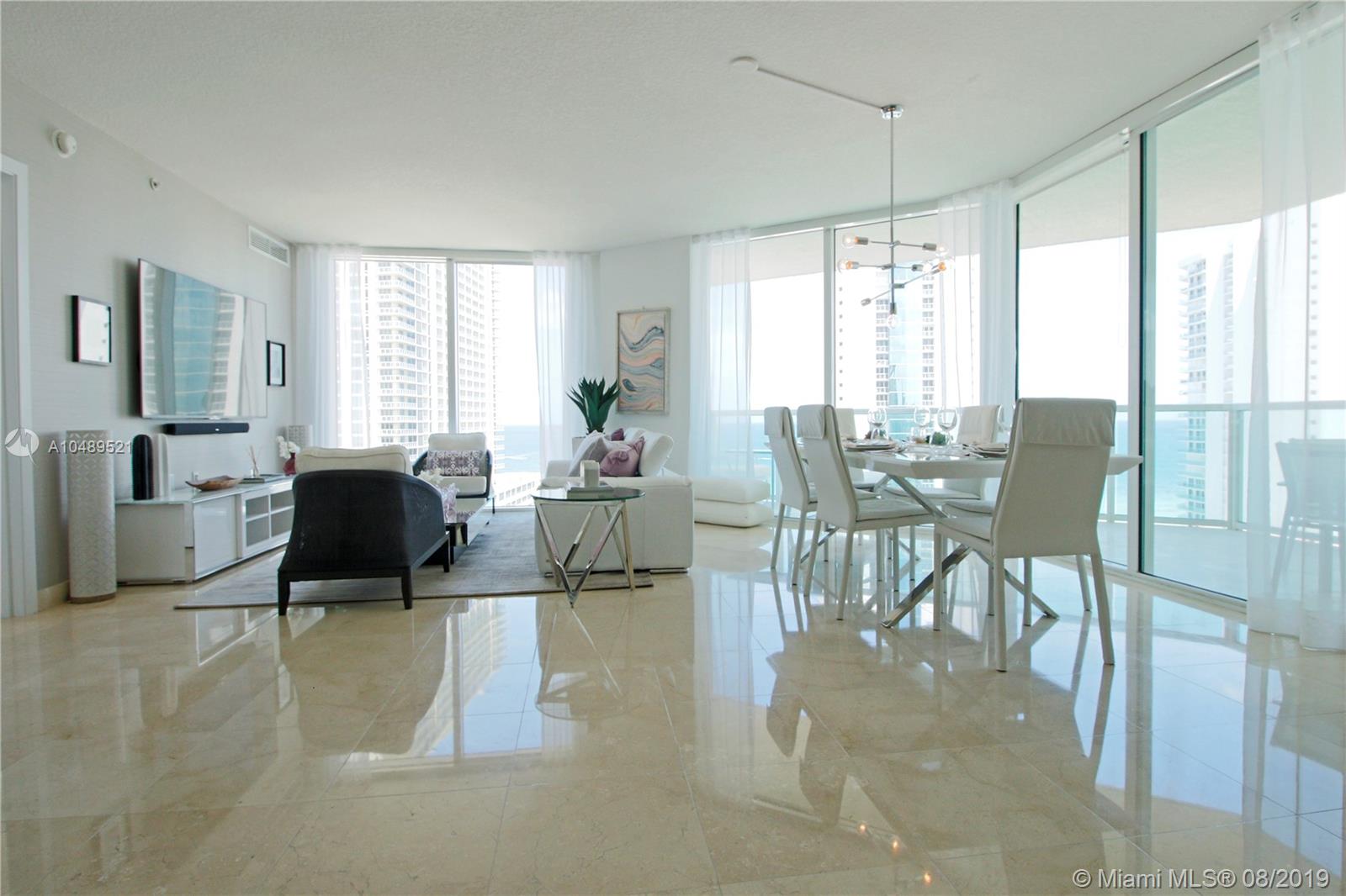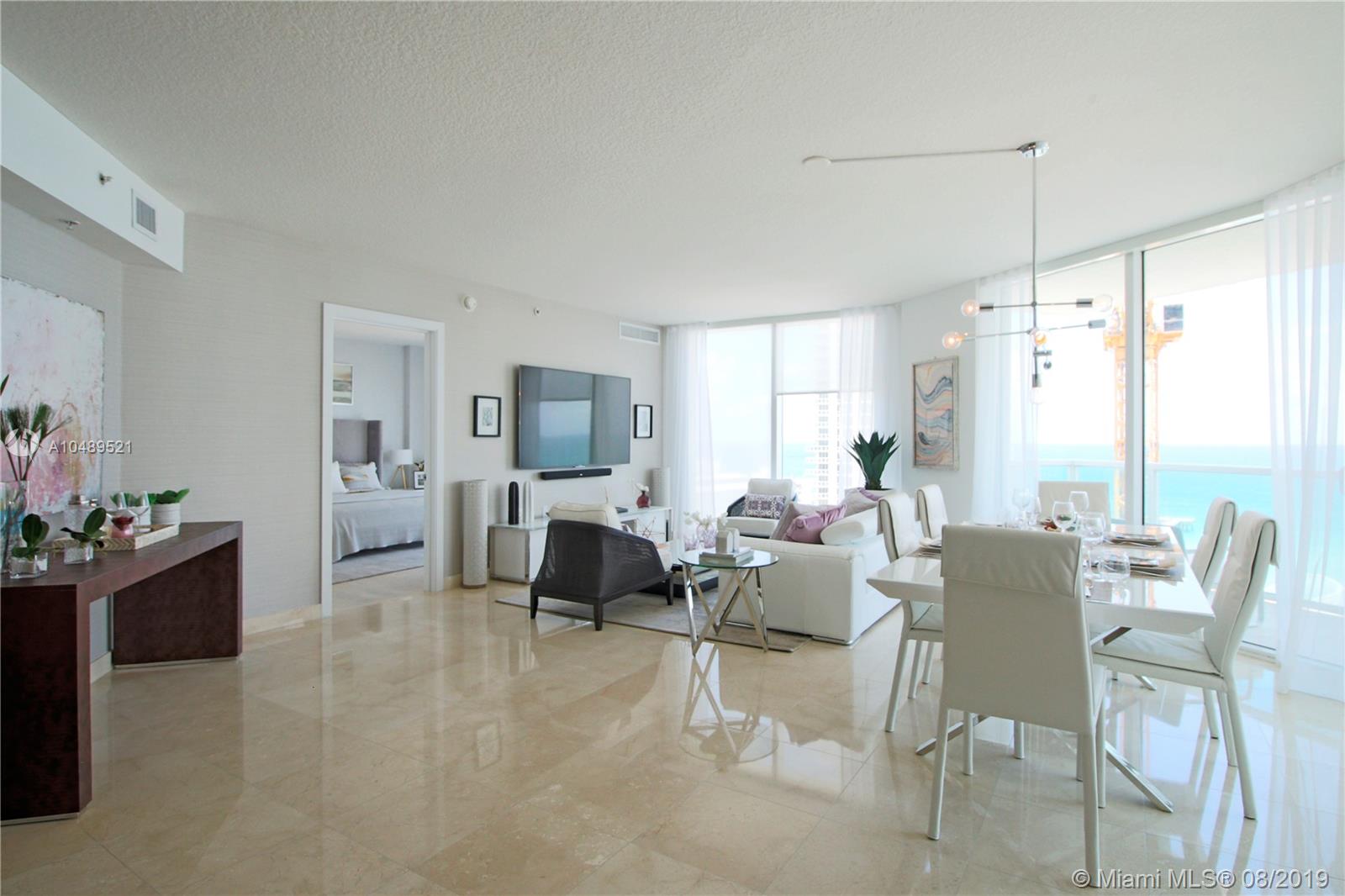 Estate sale and priced to sell. Island chic living at the luxurious St. Tropez located in Sunny Isles Beach. High floor, fully furnished unit with ocean views from master bedroom. Professionally decorated 3 bedroom & 2 bathroom unit. Notable features include marble & wood floors through out, floor to ceiling impact glass windows, custom closets, remote controlled electric blinds, quartz kitchen countertops, Lutron lighting, Alexa audio & iPad control. St Tropez offers resort-like amenities, like zero edge lap pool, state of the art fitness center, concierge service, beach shuttle & more. Across the street from the beach, retail shops, children's park short distance to Bal Harbor shops & Aventura Mall.