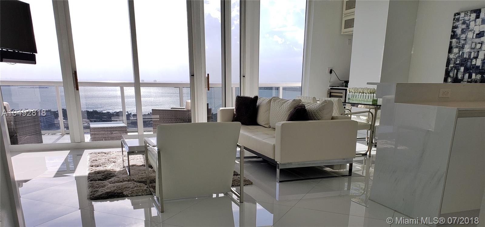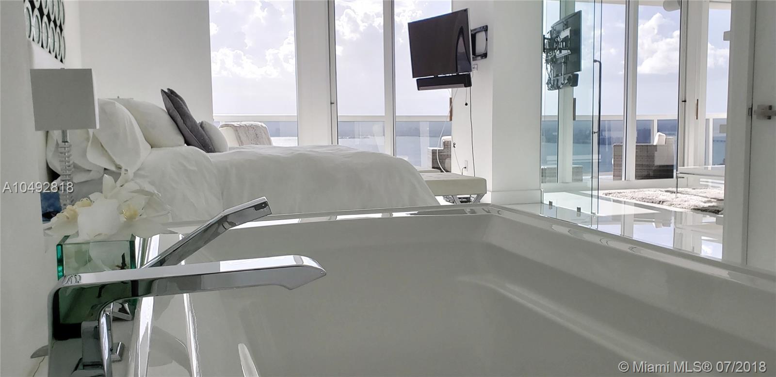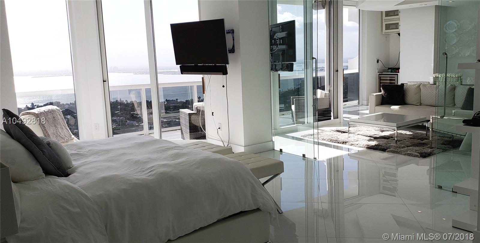 Spectacular unobstructed inter-coastal view and Miami city skyline from this impeccably designed 1 bedroom, 2 bathroom PH at the Blue Diamond. This unique penthouse features open kitchen with stainless steal appliances, floor to ceilings glass windows with motorized window treatments, white marble floor throughout, Led custom lighting walk-in closet and a big balcony. Unit is offered turn key. This beautiful ocean front building offers 1st class amenities: direct access to the beach+beach service, tennis courts, 24 hr security, concierge, oceanside clubhouse,gym spa, hot tubs, steam room , cafe' by the pool and much more. Easy to show.