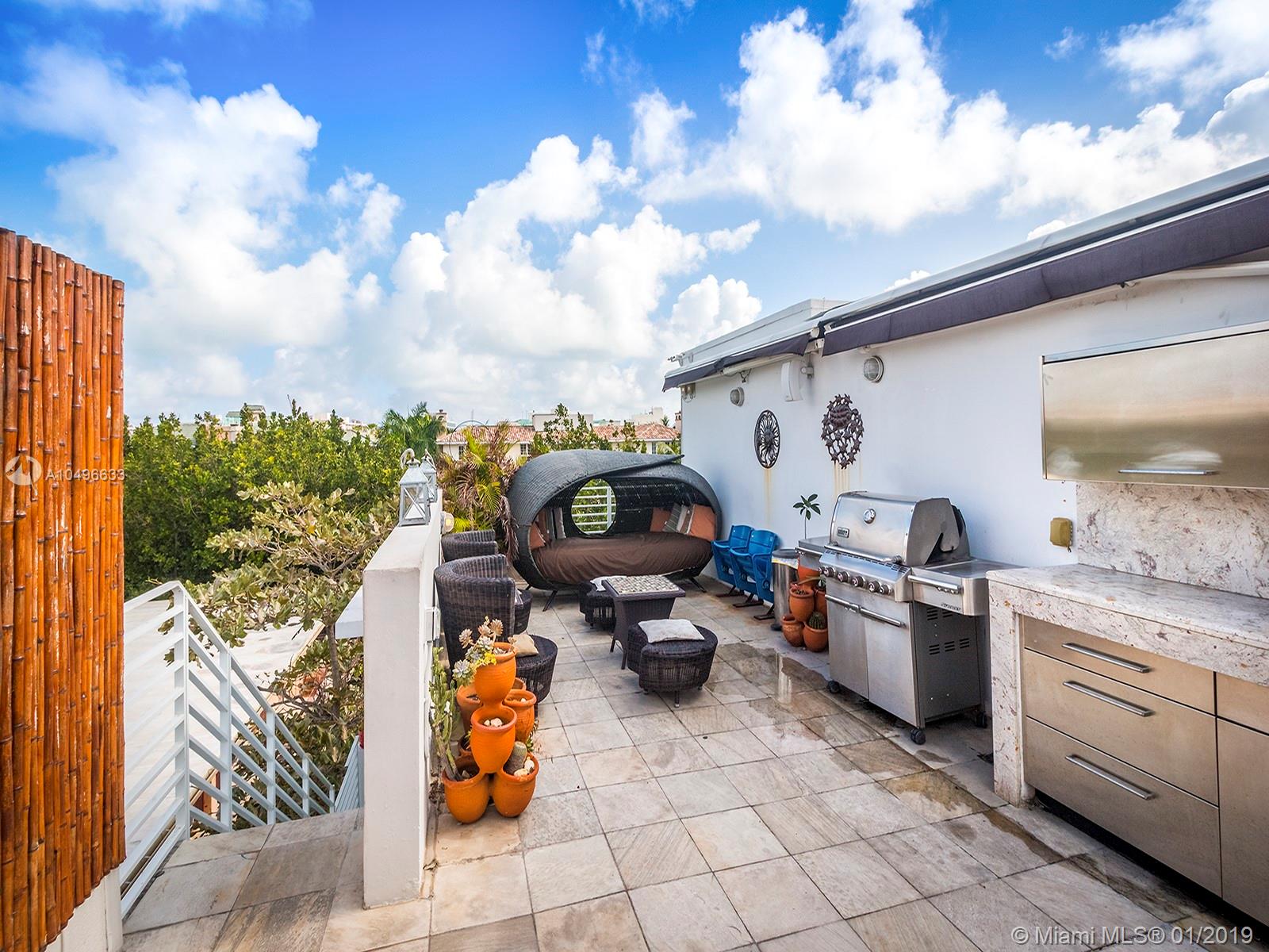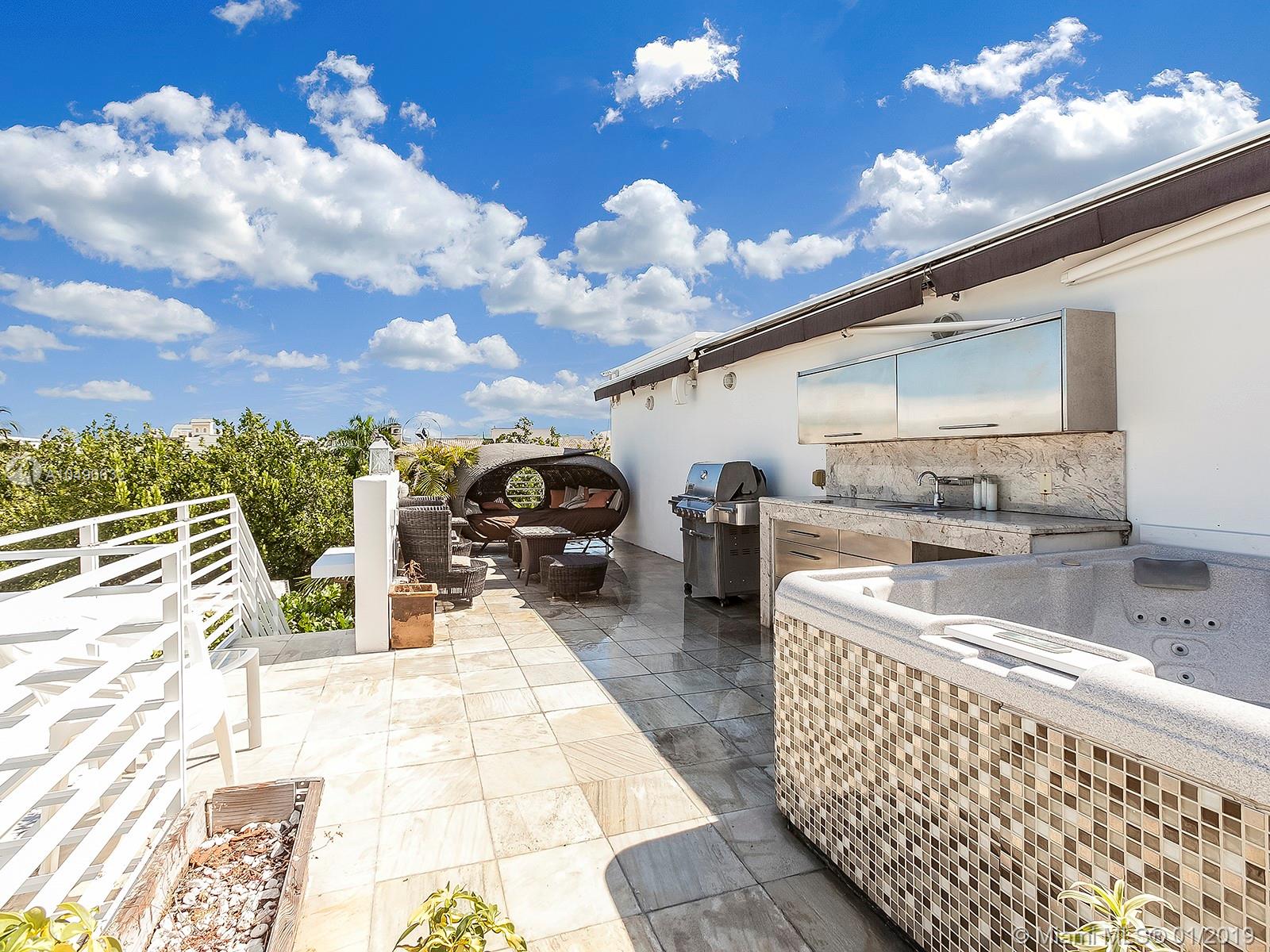 Back on the Market. Newly painted and refreshed. This is an amazing & unique South of 5th property! Sleek, modern, architecture with an incredible rooftop terrace with an outdoor kitchen, big Jacuzzi, outdoor shower, retractable awnings & tons of room. Two bedrooms plus a den. Multi-level townhouse with the master suite occupying the full top floor. It even has a private two car garage. European kitchens with stainless appliances, limestone flooring & lots of windows & light. Walk to South Point Park, marina & restaurants. Priced to sell.