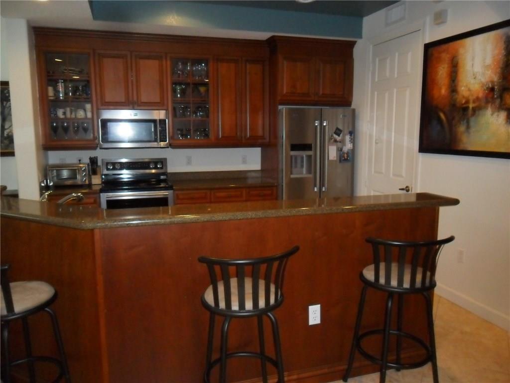 Updated corner first floor 3/2 with tranquil water view. Upgraded kitchen with new slate appliances, granite counters and upgraded cabinets. AC is 2016. Private screened covered patio. Property shows great. Extra guest parking across the street. Showings start on Saturday, July 7.