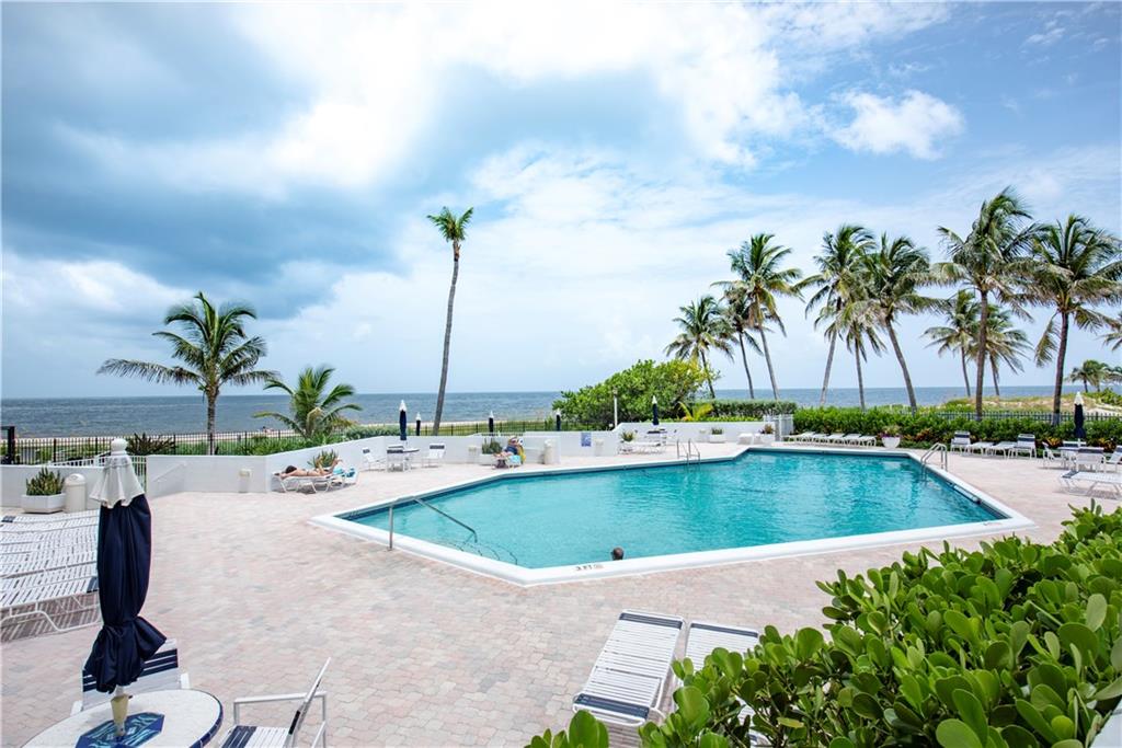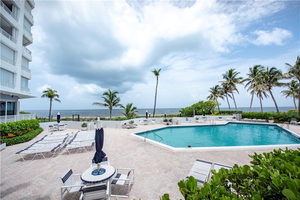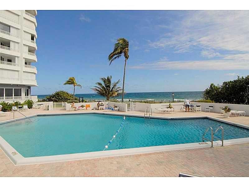 REDUCED FOR QUICK SALE!!! BEACHFRONT LIVING AT ITS BEST! SPECTACULAR DIRECT OCEAN & POOL VIEWS FROM HUGE BALCONY! SPACIOUS 2/2, SUNNY SE CORNER UNIT W/SPLIT FLOOR PLAN! IMPACT WINDOWS & DOORS + SHUTTERS. FURNISHED OR UNFURNISHED. BRIGHT EAT-IN KITCHEN, FORMAL DINING ROOM, BUILT-IN BAR, WASHER & DRYER IN UNIT. ACCESS TO PRIVATE BEACH, FULL AMENITIES, 24/7 LOBBY SECURITY, 2 PARKING SPACES (1 UNDER). LOW MAINTENANCE FEE! WALK TO SHOPPING, RESTAURANTS & POMPANO PIER. SOLD “AS-IS” W/RIGHT TO INSPECT.
