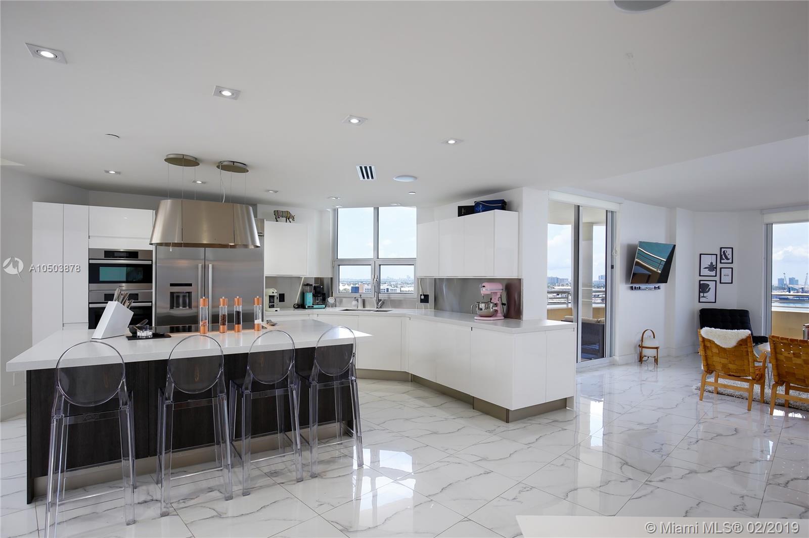 This beautifully renovated corner unit at Two Tequesta features water views from every room! Three bedrooms and two and a half baths. Fantastic open kitchen design by Porcelanosa with Miele appliances, induction cooktop, large Thermador side by side fridge and freezer, and two dishwashers. Perfect for entertaining. Spectacular views of Port of Miami, Fisher Island, Miami Beach, and downtown Miami skyline. Building amenities gym, indoor basketball and pool area equipped with barbecue grills.