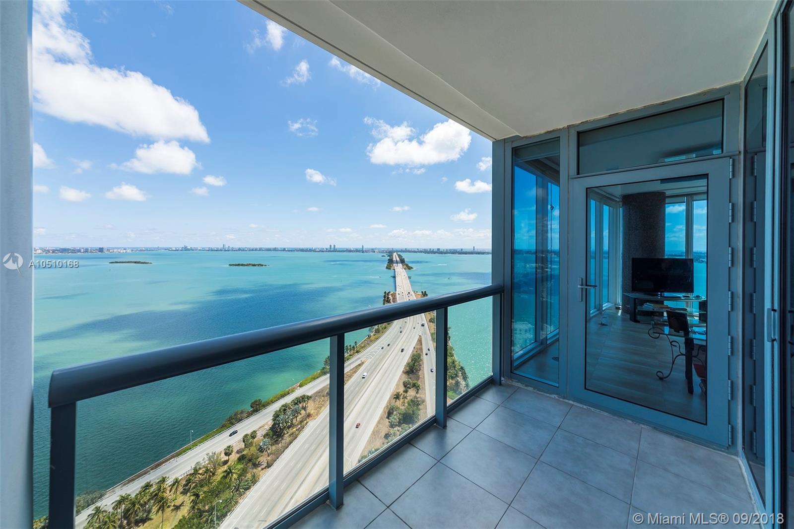 Stunning panoramic water and city skyline views! The largest and highest floor unit for a non-PH. 2138 sf per appraisal and priced less than appraisal. Expanded master suite, 2nd bedroom with marble en suite bath, powder room, pantry, W&D in unit, parking for 3 cars (2 assigned & 1 free valet space). 24hr concierge, valet parking, 2 pools, bbq area, gym, movie theater, billiards, business center, party rm, pet friendly, dog park, bicycle parking, extra storage.